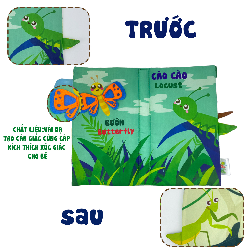 ✨Sách Vải Tương Tác Cho Bé Đoán Đuôi Con Vật - Thế Giới Côn Trùng