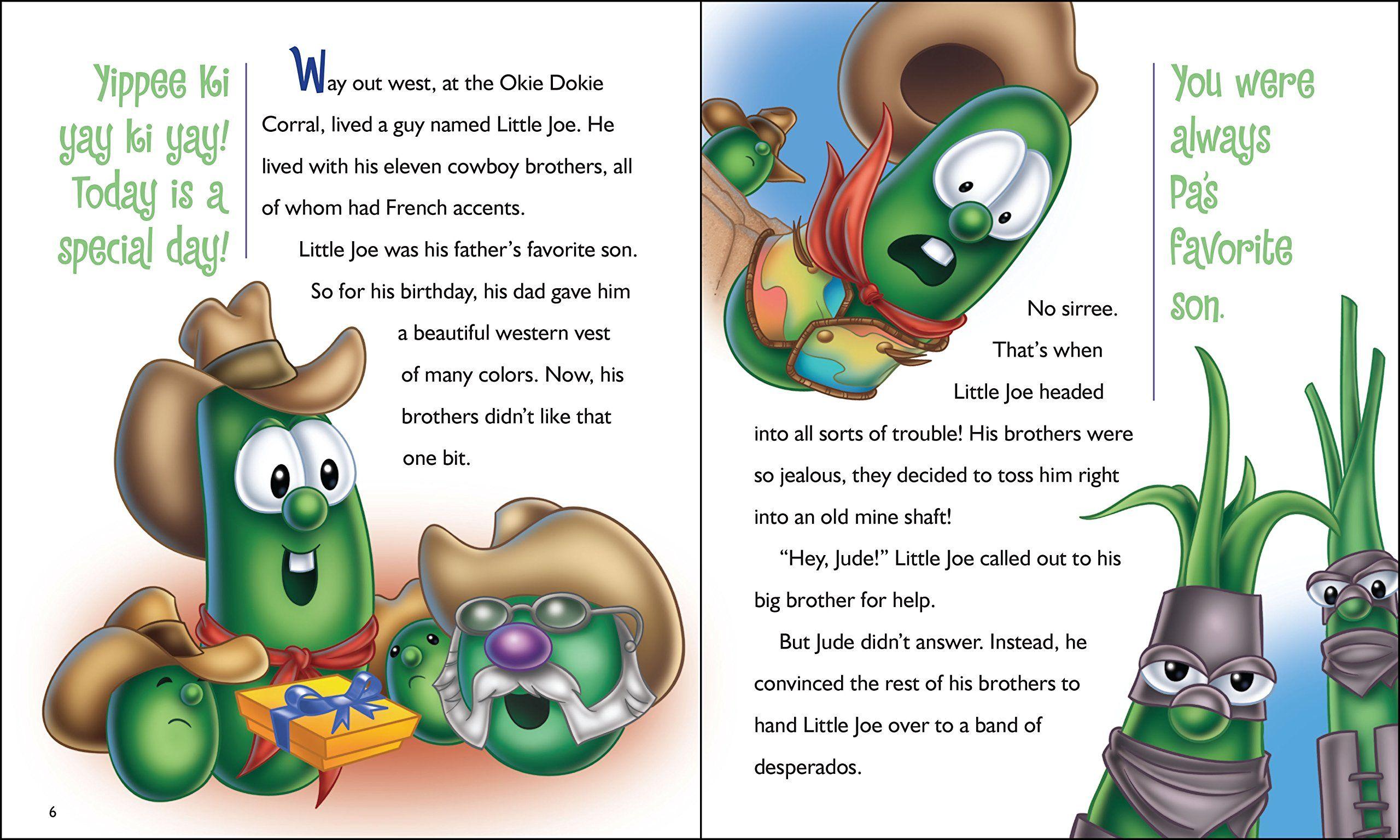 ---------------------------------------- Join Bob the Tomato, Larry the Cucumber, and all your VeggieTales friends as they share twenty favorite Bible stories. Based on the popular videos, this Bible storybook combines VeggieTales humor with great lessons. Kids will love reading these classic Veggie stories and Scripture selections that go along with them from the New International Reader's Version (NIrV--The NIV for Kids!) Have fun while learning Bible stories and the important message each one brings. Sunday morning values, Saturday morning fun!