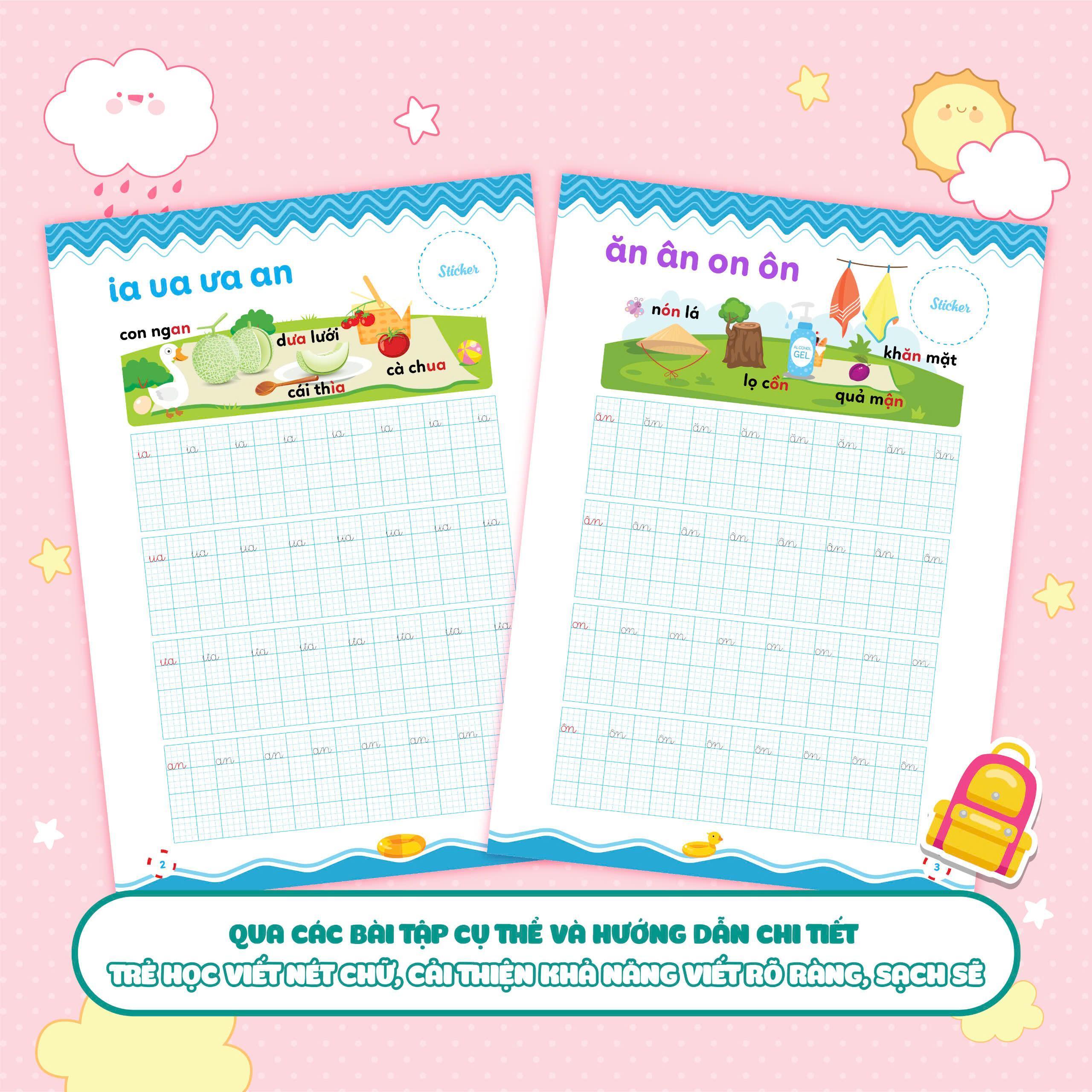 Với sự kết hợp giữa hình ảnh minh họa và thiết kế hấp dẫn, bộ sách tạo một môi trường học tập trực quan và kích thích sự sáng tạo của trẻ. Trẻ sẽ được hòa mình vào các trang sách rực rỡ màu sắc và cảm nhận niềm vui khi học viết chữ mới.