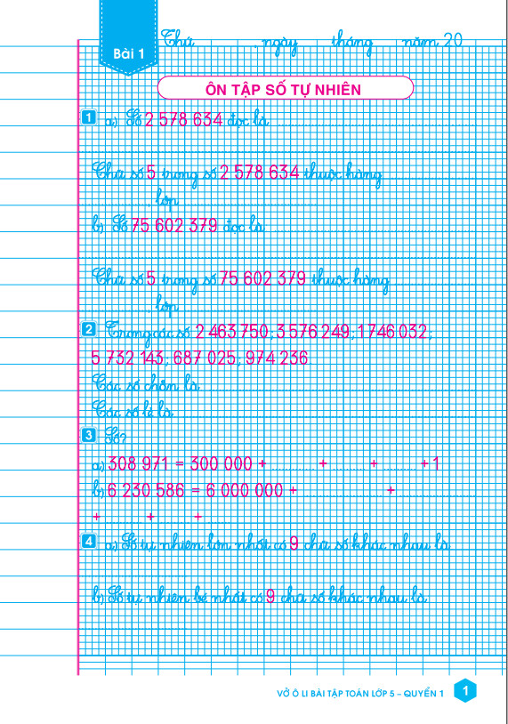 Bộ Vở Ô Li Bài Tập Toán được biên soạn bám sát chương trình sách giáo khoa hiện hành, giúp các em tự học tại nhà một cách hiệu quả. Đặc biệt, hình thức vở kẻ ô li giúp các em rèn viết chữ sạch, đẹp, trình bày rõ ràng. Đây là tài liệu bổ ích giúp các em học sinh học tốt chương trình Toán trên lớp.
