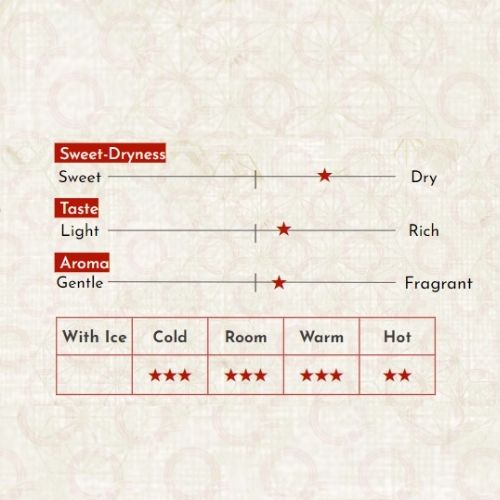 Junmai Ginjo, Ayane đặc biệt quan tâm đến "sản xuất địa phương để tiêu thụ tại địa phương, tất cả Ayabe" và sử dụng tất cả loại gạo sake "Gohyakumangoku" được ông Nakatsukuma, một nông dân ở thành phố Ayabe, chăm sóc chu đáo và nước nấu rượu là của riêng xưởng rượu, nước ngọt chảy ra từ giếng và cầu nguyện tại Đền Wakamiya, cũng trong thành phố. “Âm thanh của Ayakomachi” vang vọng nhẹ nhàng bên trong nhà máy rượu và “âm thanh mang màu sắc của Ayabe” có thể được nghe thấy trong suốt các mùa. Hi vọng rằng bạn sẽ tận hưởng được vị ngọt dịu của rượu sake này khi cảm nhận theo cách này.