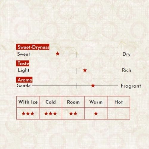 Loại rượu sake đặc biệt có hương thơm thoang thoảng và độ axit nhẹ làm lớp nền, đó là hương thơm sảng khoái nguyên bản và vị ngọt tinh tế của quả yuzu. Mandara Topaz Yuzu có sự cân bằng một cách hoàn hảo giữa nước ép trái cây và r'ượu sake, nhẹ nhàng và dễ uống khi uống trực tiếp hoặc khi dùng với đá lạnh. Ngoài ra, bạn cũng có thể thưởng thức nó theo nhiều cách khác nhau, chẳng hạn như mix cùng soda hoặc trà để pha cocktail,..