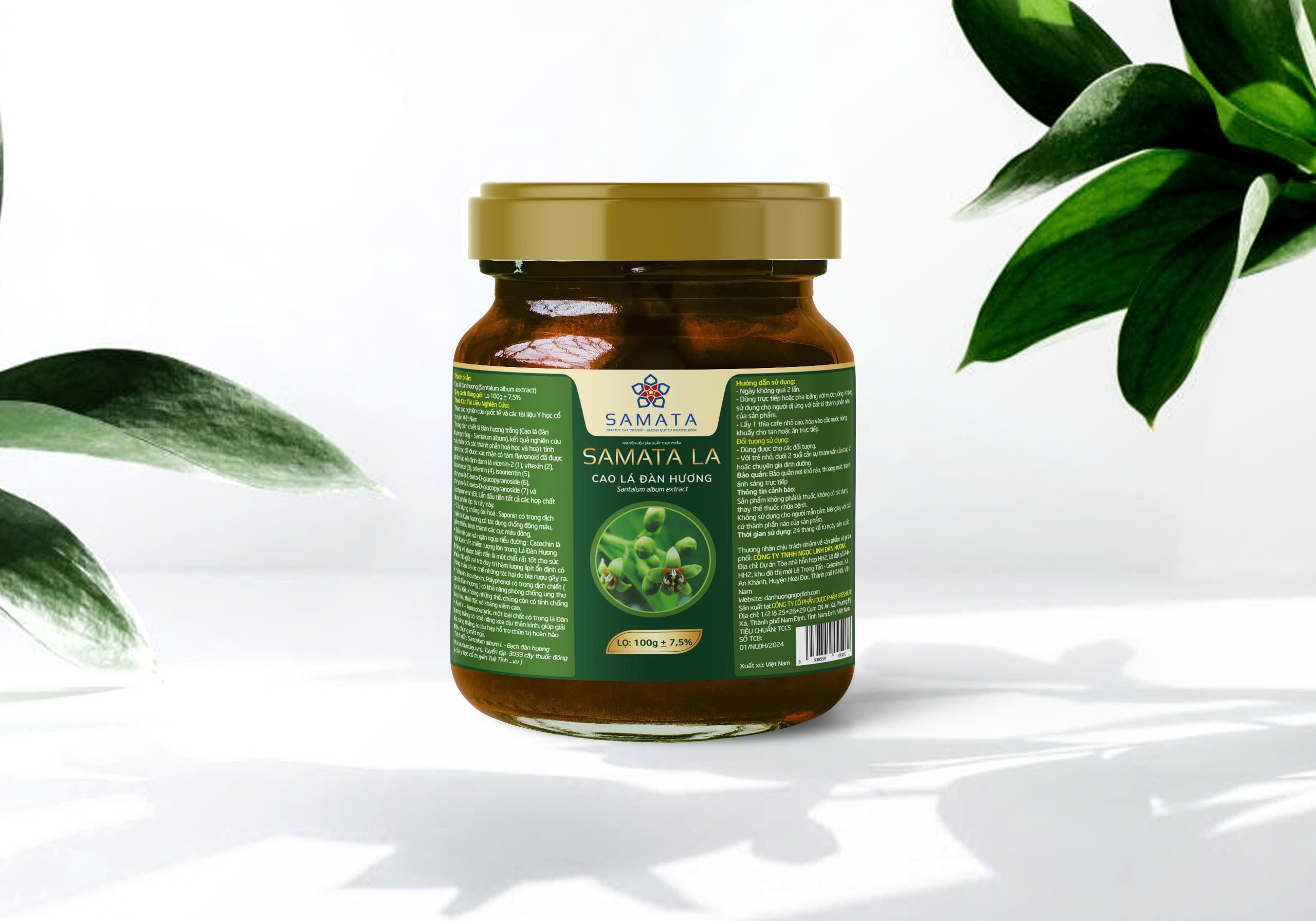 - Tên sản phẩm SAMATA – Cao Lá Đàn Hương (Santalum album extract) - Thành Phần Chính: Lá đàn hương: Chiết xuất từ lá cây đàn hương trắng (Santalum album), giàu dưỡng chất có lợi