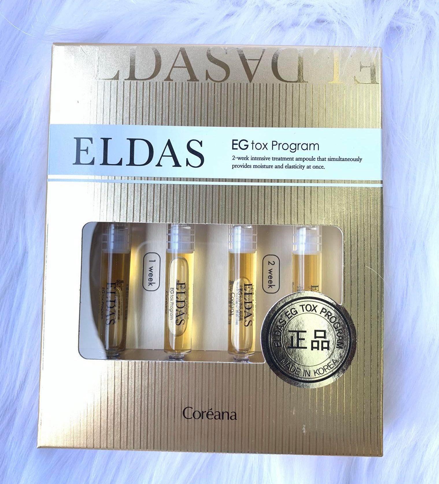 - Tế bào gốc Eldas EG Tox Program Coreana 4 ống nuôi dưỡng da căng mịn, trẻ trung, làm chậm quá trình lão hóa da.