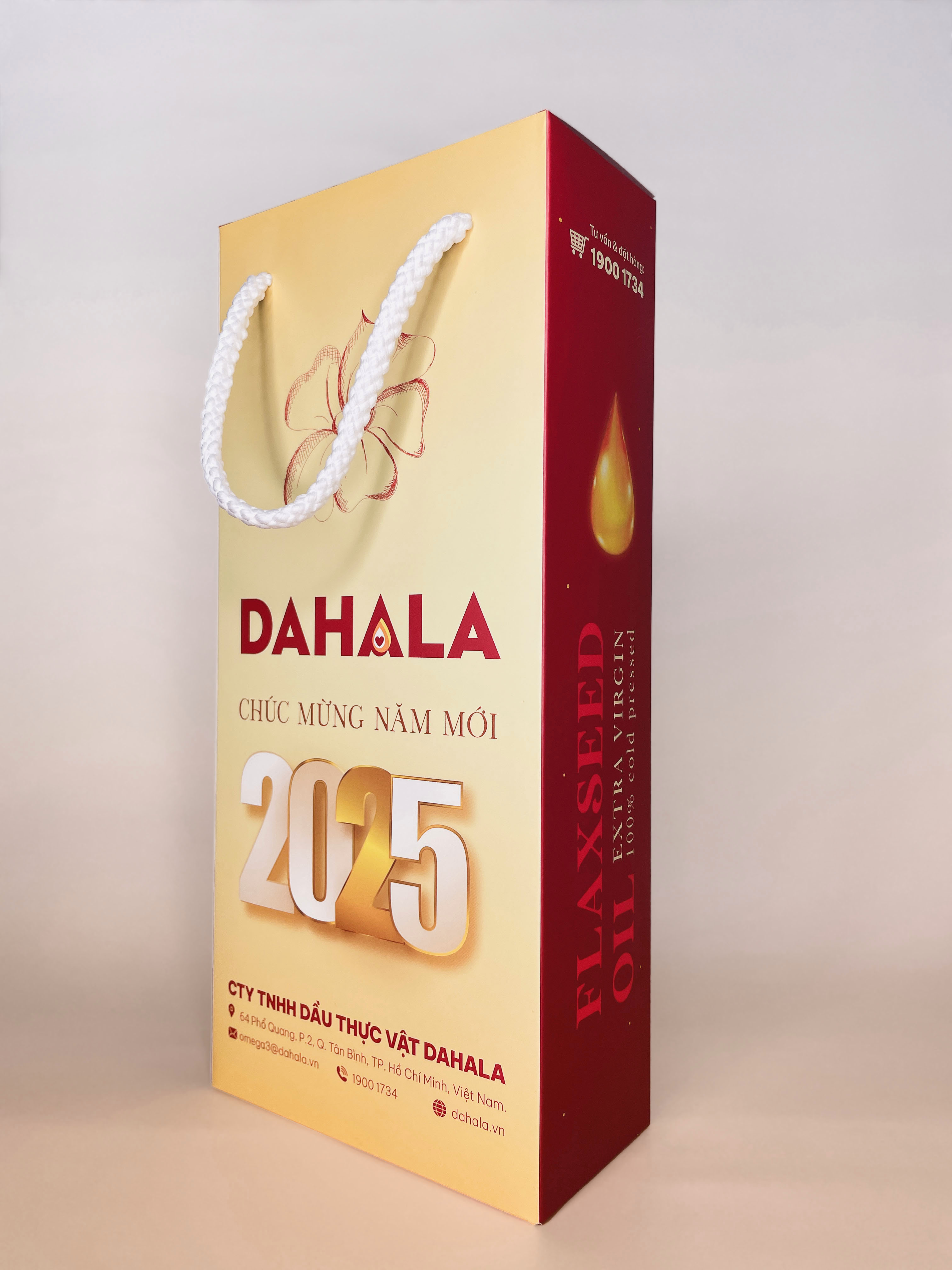 ✨(SET 2 CHAI) SET HỘP QUÀ TẾT DẦU HẠT LANH ÉP LẠNH BỀN NHIỆT DAHALA 25O MI, GIÀU OMEGA 3,6,9