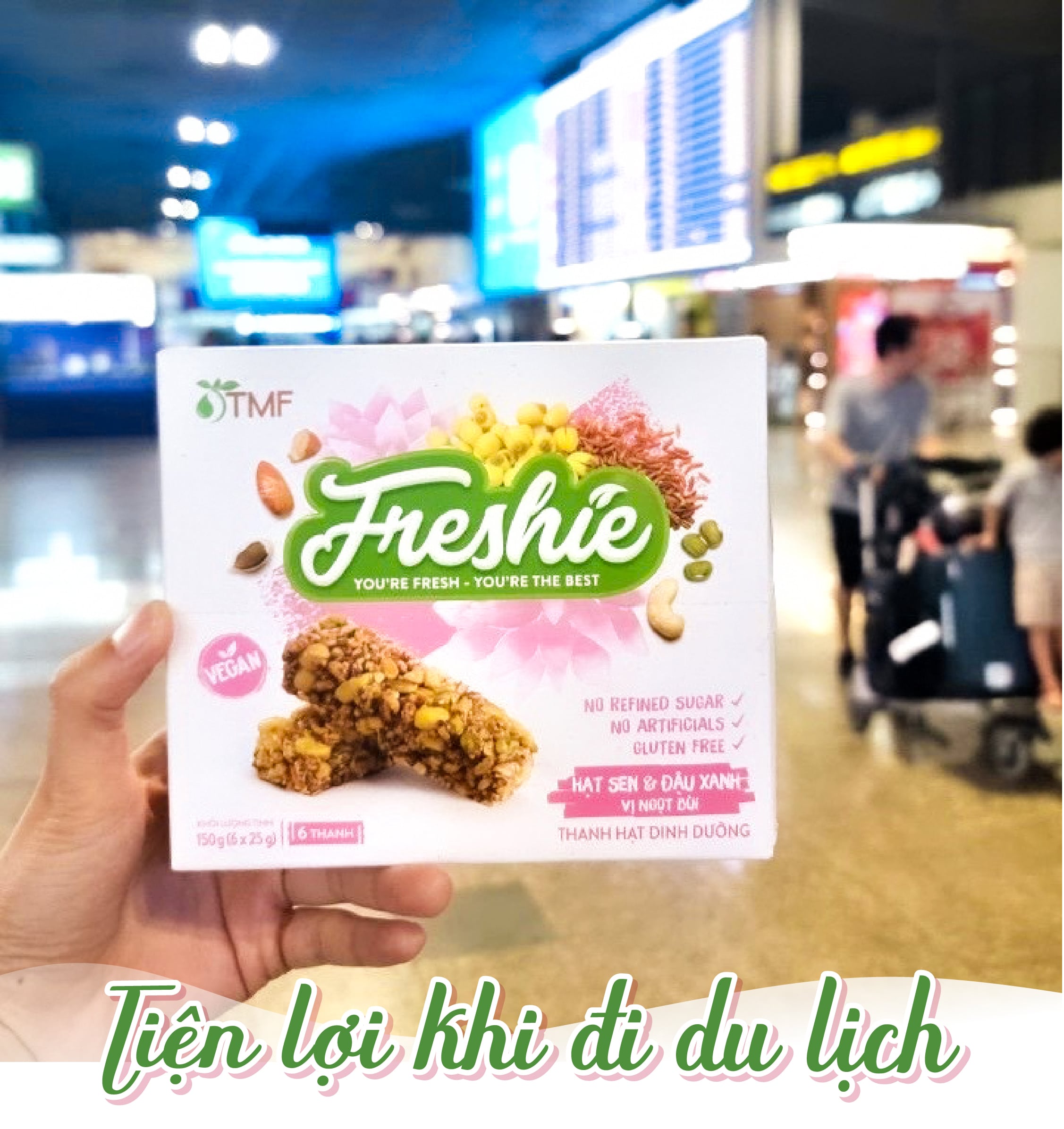 Thanh hạt dinh dưỡng Freshie được làm từ các nông sản thuần Việt, không chứa đường tinh luyện, không hương liệu và chất bảo quản, an toàn cho sức khỏe. Với thông điệp You’re fresh, You’re the best, Năng lượng tươi mới - khởi sự tuyệt vời, thanh hạt dinh dưỡng Freshie là sự lựa chọn hoàn hảo, bổ sung năng lượng trước khi bắt đầu bất kỳ hoạt động nào; giúp bạn trở nên năng động và có một khởi đầu tuyệt vời hơn bao giờ hết. Hãy thử Freshie và cảm nhận sự khác biệt nhé!
