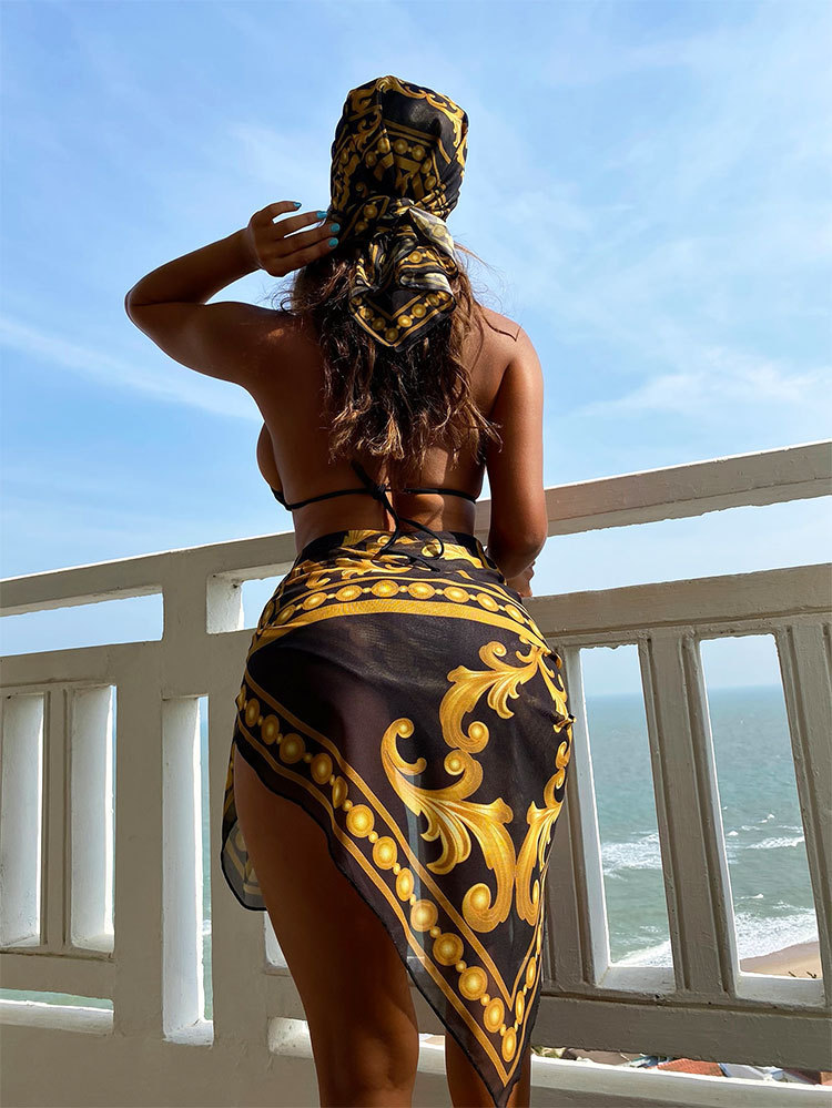 Bikini Tam Giác Kèm Khăn Lưới Chất liệu Polyester Đây là chất liệu không quá xa lạ đối với may đồ bơi nữ. Sợi Polyester rất nhẹ, có khả năng chống thấm và khô nhanh.