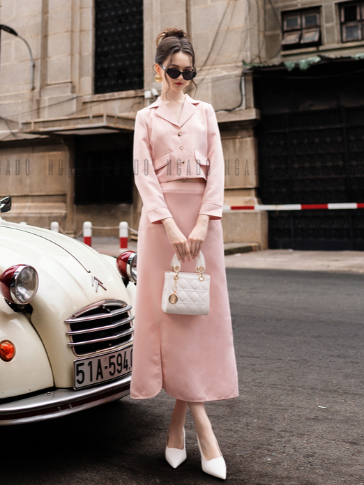 ✨Set vest hồng dài tay NGADO , set đồ nữ , set đồ nữ thiết kế , sang trọng , dự tiệc , Set áo kèm chân váy