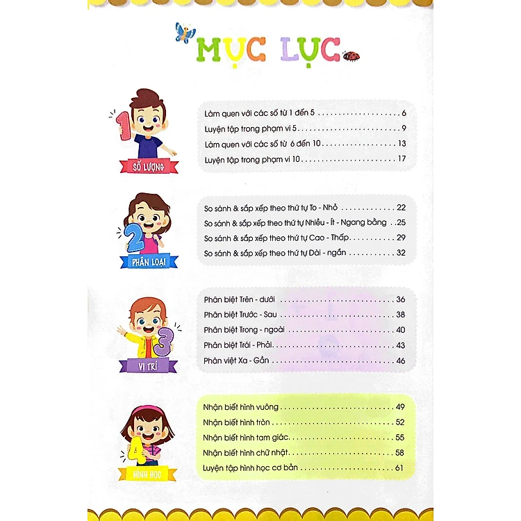 • Cuốn sách này hướng đến trẻ từ 3-4 tuổi, giúp trẻ ở giai đoạn đầu làm quen với toán học một cách vui vẻ và hấp dẫn.