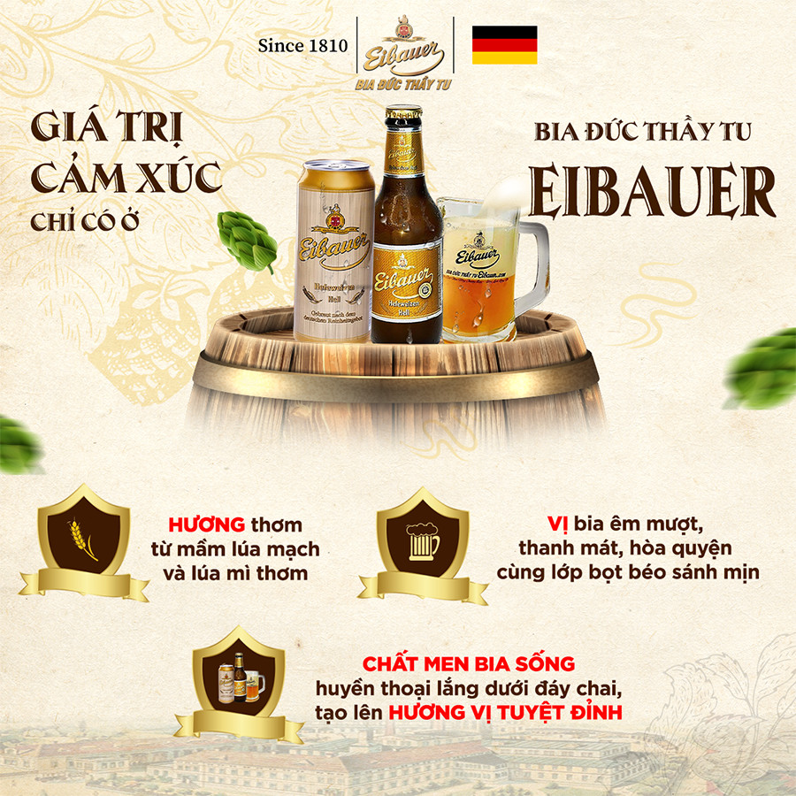 [SINCE 1810] Bia Đức Thầy Tu Eibauer Vàng 5.2 ĐỘ - Lên Men Tự Nhiên Thượng Hạng - Nhập Khẩu Chính Hãng Xuất xứ & Nơi sản xuất / Origin: Đức / Germany Nồng