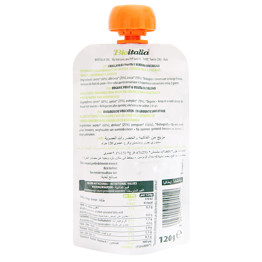 - Hỗn Hợp Mơ, Cà Rốt Và Bí Đỏ Hữu Cơ BioItalia (120g) là loại sinh tố trái cây giàu Vitamin với thành phần 100% Organic.