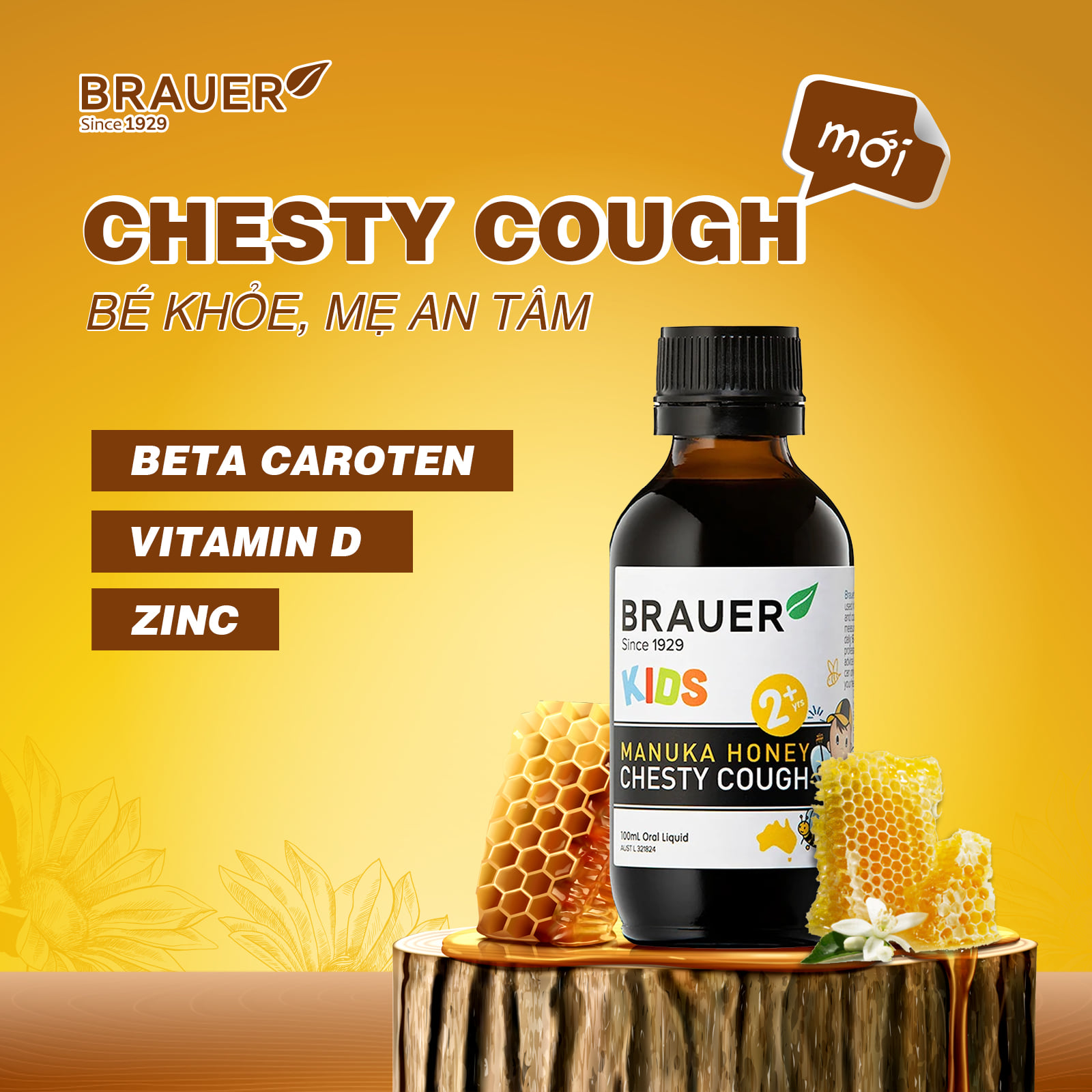 ✨Siro giảm ho cho bé từ 2 tuổi Brauer Kids Manuka Honey Chesty Cough giảm ho khan, ho có đờm - QuaTangMe Extaste