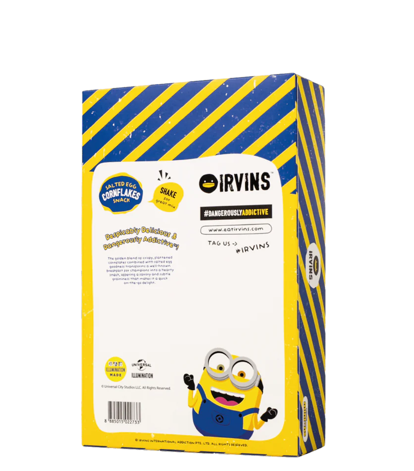 CORNFLAKES - SẢN PHẨM HOÀN TOÀN MỚI TỪ IRVINS! LẦN ĐẦU TIÊN KẾT HỢP VỚI MINIONS Sự kết hợp đỉnh cao của bột ngô giòn rụm, mỏng nhẹ được kết hợp với vị ngon của trứng muối trở thành một bữa sáng tuyệt vời cho mọi người. Ngoài ra, Cornflakes có thể là một món ăn nhẹ bổ dưỡng, mang đến hương vị mặn mà với hàm lượng ngũ cốc cao đầy dinh dưỡng, trở thành một món ăn tiện lợi khi di chuyển hoặc mang theo mọi lúc mọi nơi.