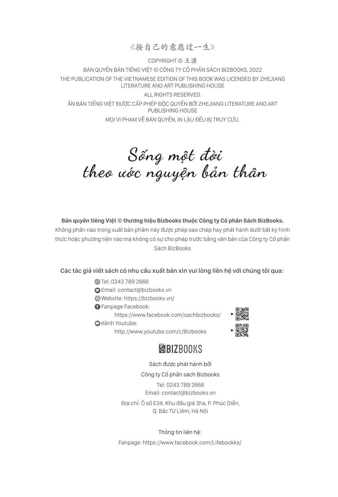 Sống Một Đời Theo Ước Nguyện Bản Thân Cuốn sách gồm có 5 chương chính: Chương 1: Dường như cô ấy đã đạt được tất cả mọi điều trong kế hoạch Chương 2: Đừng ung dung mà bước vào cái nghề này Chương 3: Bạn không hề sai, chỉ tại bạn quá yếu Chương 4: Trông kìa, tình yêu đích thực Chương 5: Hai mươi mốt cây số của tôi Trước giờ bạn có tự hỏi bản thân rằng, liệu bạn có đang sống cuộc sống mà bạn mong muốn hay không? Có phải đã rất nhiều lần, suýt chút nữa là bạn đã cúi đầu buông xuôi, suýt chút nữa là bạn đã tự nhủ lòng m.ình rằng: “Thôi bỏ đi, thế này cũng được rồi.” Nhưng rồi bạn nhận ra trong con người m.ình vẫn còn tồn tại một thứ gì đó, có lúc người ta gọi đó là tham vọng, trong những cuộc thi tài năng thì được gọi là ước mơ và cũng có lúc lại là nhiệt huyết. Bởi vì có nhiệt huyết nên bạn có thể dựng mục tiêu cao hơn cái hang động một chút và coi việc hoàn thành mục tiêu như là một lối ra rực rỡ ánh sáng. Sống một đời theo ước nguyện của bản thân không phải là một lời phán xét hay tổng kết, mà là một nguyện vọng, một lời thề. Hãy sống hết m.ình như những gì bạn mong muốn, vì bạn xứng đáng được dùng cả cuộc đời của m.ình để giành lấy quyền được là chính m.ình. Cuốn sách này dành cho những người vẫn nghĩ cuộc sống tràn đầy hy vọng. Những người này cũng giống như tác giả trong quá khứ và hiện tại, sống trong sự chờ đợi mỗi ngày, chờ đợi những điều bất ngờ, đánh cược vào ngày mai, tin rằng bản thân vẫn đang sống trước thời kỳ đỉnh cao của m.ình. Tất cả những ý tưởng và câu chuyện được viết trong cuốn sách này, bất kể vui mừng hay thất vọng đều đã được tác giả trải nghiệm qua và mang ra đánh đổi. Trong quá trình kể lại, chúng ta sẽ thấy rằng dù là ngày nào hay thời điểm nào đi chăng nữa, mọi thứ đều để lại dấu vết, sự liên kết giữa những sợi tơ lớn nhỏ mới dệt nên ý nghĩa của nó trong bức tranh toàn cảnh cuộc sống. “Chỉ cần bạn còn ước mơ, còn tin tưởng, còn thực hiện, bạn có thể đi đến bất cứ nơi đâu, đạt được bất cứ điều gì m.ình muốn.” Những câu chuyện từ quá khứ cho chúng ta biết rằng, những khoảnh khắc thú vị nhất đều nằm ở tương lai phía trước, tất cả mọi thứ đều nằm ở phía trước. Cuốn sách này không chỉ là những câu chuyện mà ở cuối cùng có có cả một danh sách để bạn có thể lập kế hoạch cuộc đời của m.ình. Kế hoạch cuộc đời này phù hợp làm trên máy tính, ước nguyện có thể được cập nhật liên tục và nhiều năm sau đối chiếu với nội dung được lập ra ban đầu, bạn sẽ thấy được kỳ tích. Dù hôm nay bạn vẫn cứ nhỏ bé yếu đuối, nhưng đừng lo, hãy bước tiếp và phấn đấu vì ngày mai trở nên mạnh mẽ, tốt đẹp hơn.