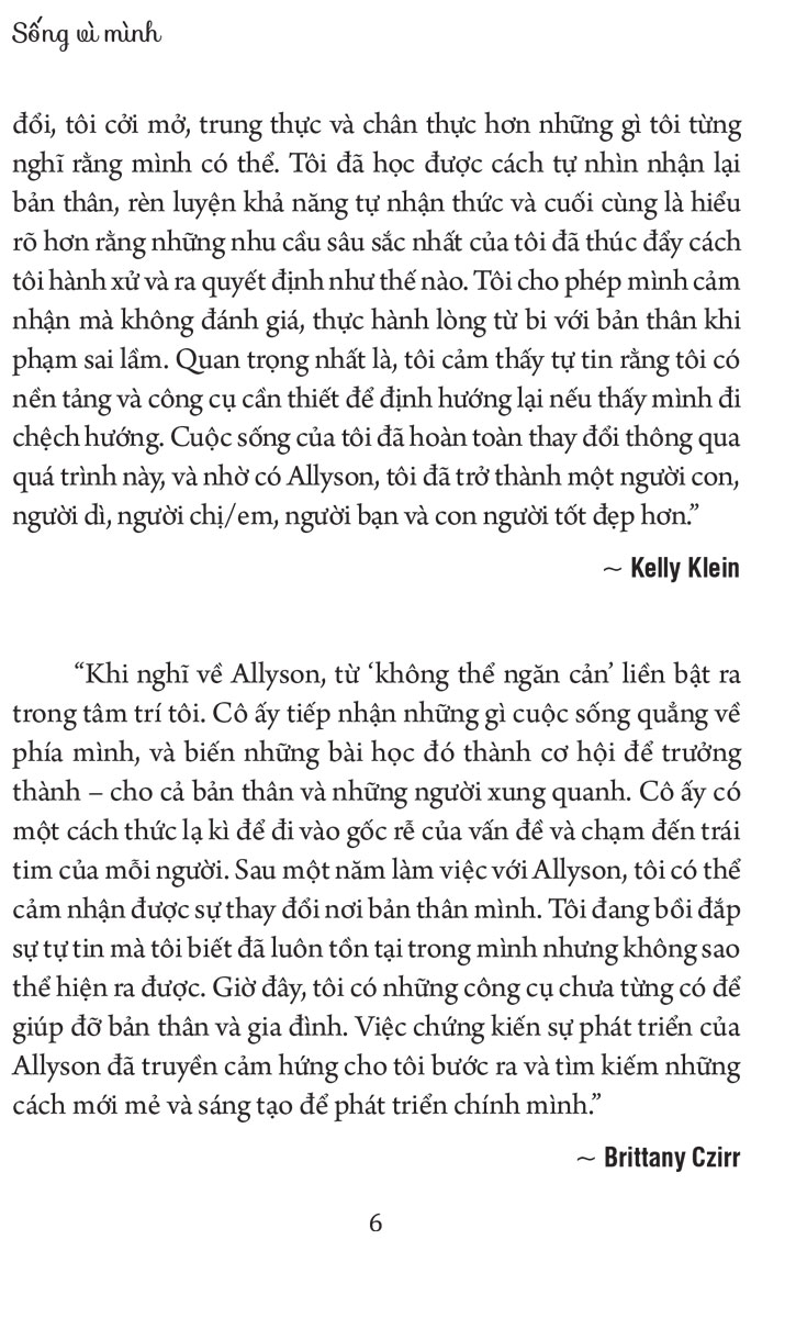 Sống Vì Mình Bạn có cảm thấy bất hạnh không? Bạn có cảm thấy bị đối xử tàn tệ không? Bạn có xu hướng nỗ lực rất nhiều trong mối quan hệ không? Bạn có kiệt quệ hay cạn năng lượng không? Bạn có cảm thấy không được trân trọng không? Bạn có đang làm việc quá sức không? Hay bị trả lương quá thấp không? Nếu câu trả lời là có cho một hoặc nhiều câu hỏi ở trên, cuốn sách này là dành cho bạn! Nếu bạn nhận ra những cảm giác này hoặc thấy mình ở trong bất cứ tình trạng nào như đã kể trên mà không thể thoát ra, đã đến lúc tự hỏi bản thân rằng mình đang cho phép điều gì xảy ra? Sự thật khó chấp nhận là, không có tình trạng nào trong số những tình trạng kể trên có thể tồn tại lâu dài mà không có sự cho phép của bạn. Nếu bạn đang ở trong những tình huống hoặc mối quan hệ chỉ đem lại cảm giác tiêu cực, thì có nghĩa là bạn đang tiếp tay hoặc chấp nhận một điều gì đó. Những trạng thái dài hạn này không ngẫu nhiên xảy ra mà cần đến sự thuận theo của họ. Cuốn sách là hành trình hướng vào các tổn thương bên trong Cuốn sách SỐNG VÌ MÌNH là một cuộc hành trình hướng vào bên trong, để bạn nhìn vào những gì bạn đang cho phép xảy ra trong cuộc sống của mình. Cuốn sách là món quà tri thức, sự thấu hiểu và các công cụ để giúp bạn chịu trách nhiệm hoàn toàn cho cuộc sống của mình. Cuốn sách là một hành trình nội tâm của công cuộc khám phá bản thân, sự trung thực và trách nhiệm cá nhân, để soi sáng những góc sâu kín nhất của cảm xúc, suy nghĩ, niềm tin, nhu cầu, thói quen, và khuôn mẫu hành động của bạn. Cuốn sách giúp bạn tự chịu trách nhiệm cho cuộc sống của mình Không phải lúc nào bạn cũng đạt được những gì mình muốn, nhưng như Mick Jagger đã hát: "Nếu thỉnh thoảng cố gắng, bạn sẽ tìm được những gì mình cần." SỐNG VÌ MÌNH, như cái tên của nó, dẫn bạn bước lên con đường tự chịu trách nhiệm cho hạnh phúc của chính mình. Con đường đó dẫn tới đâu? Mời bạn cùng Minh Long khám phá trong cuốn sách này, bạn sẽ không thất vọng!