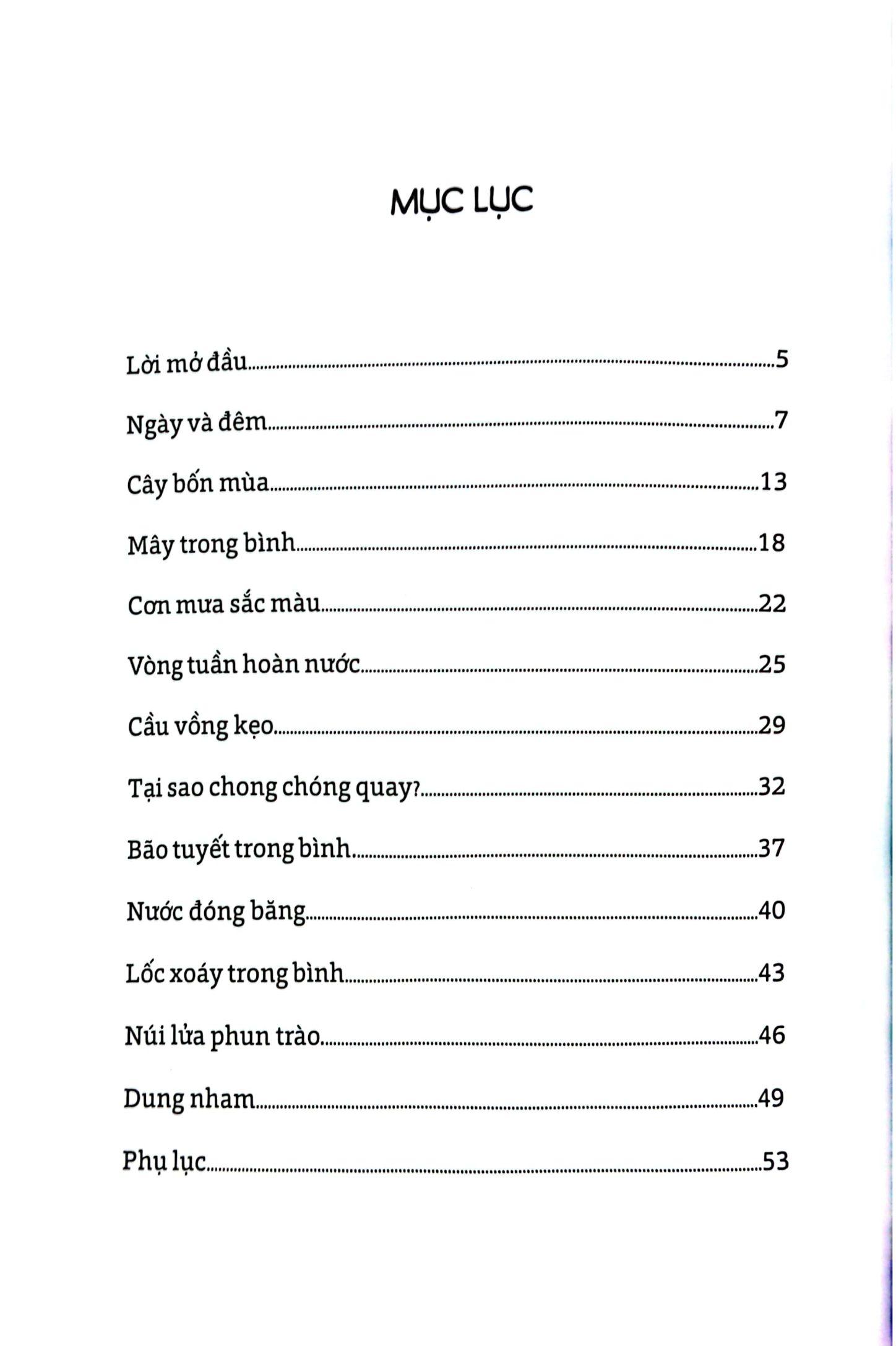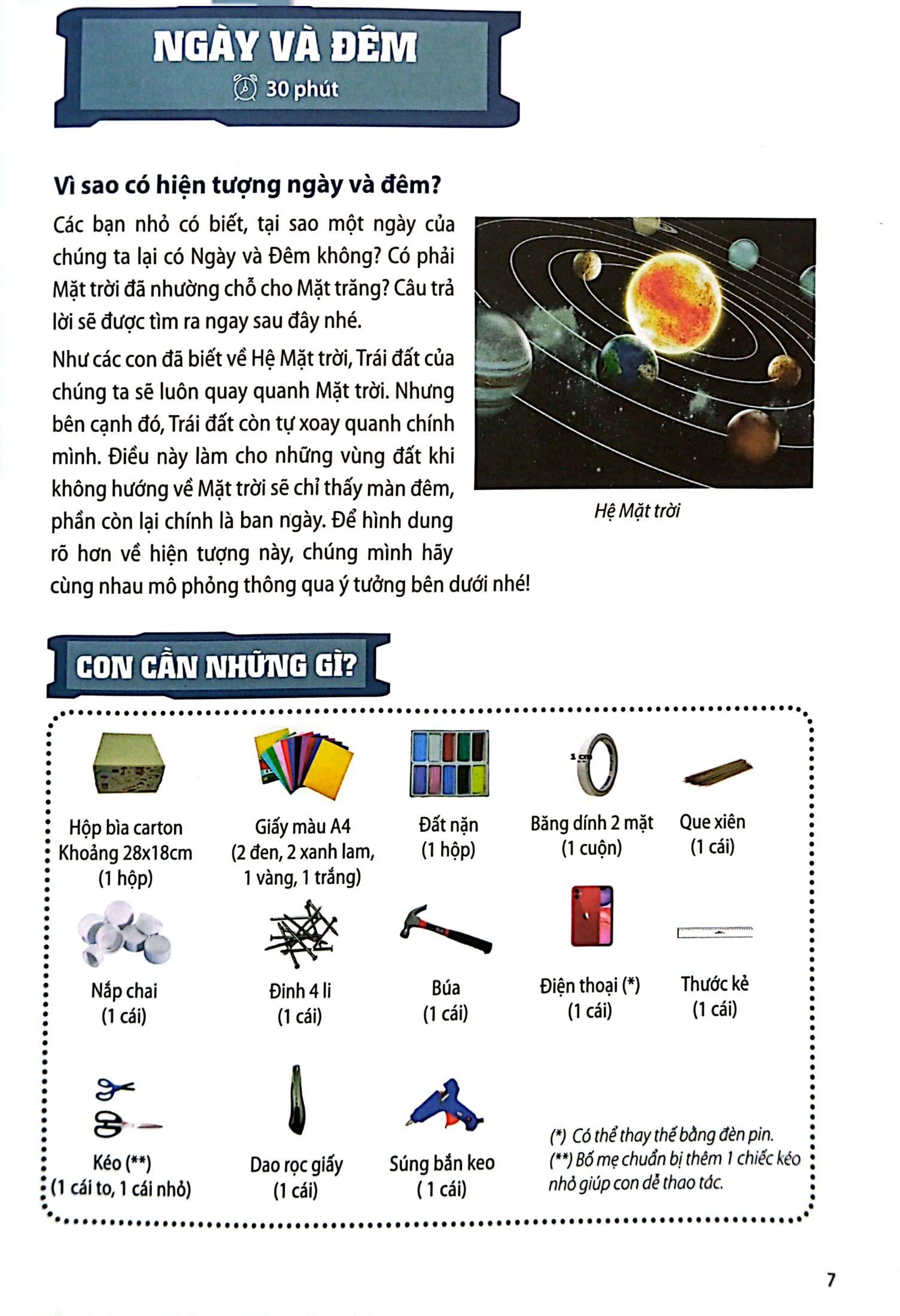 Cuốn sách gồm 52 thí nghiệm về Vật Lý, Hóa học và Sinh học. Trẻ sẽ được tìm hiểu những hiện tượng hết sức quen thuộc của cuộc sống như hiệu ứng nhà kính, chuyển