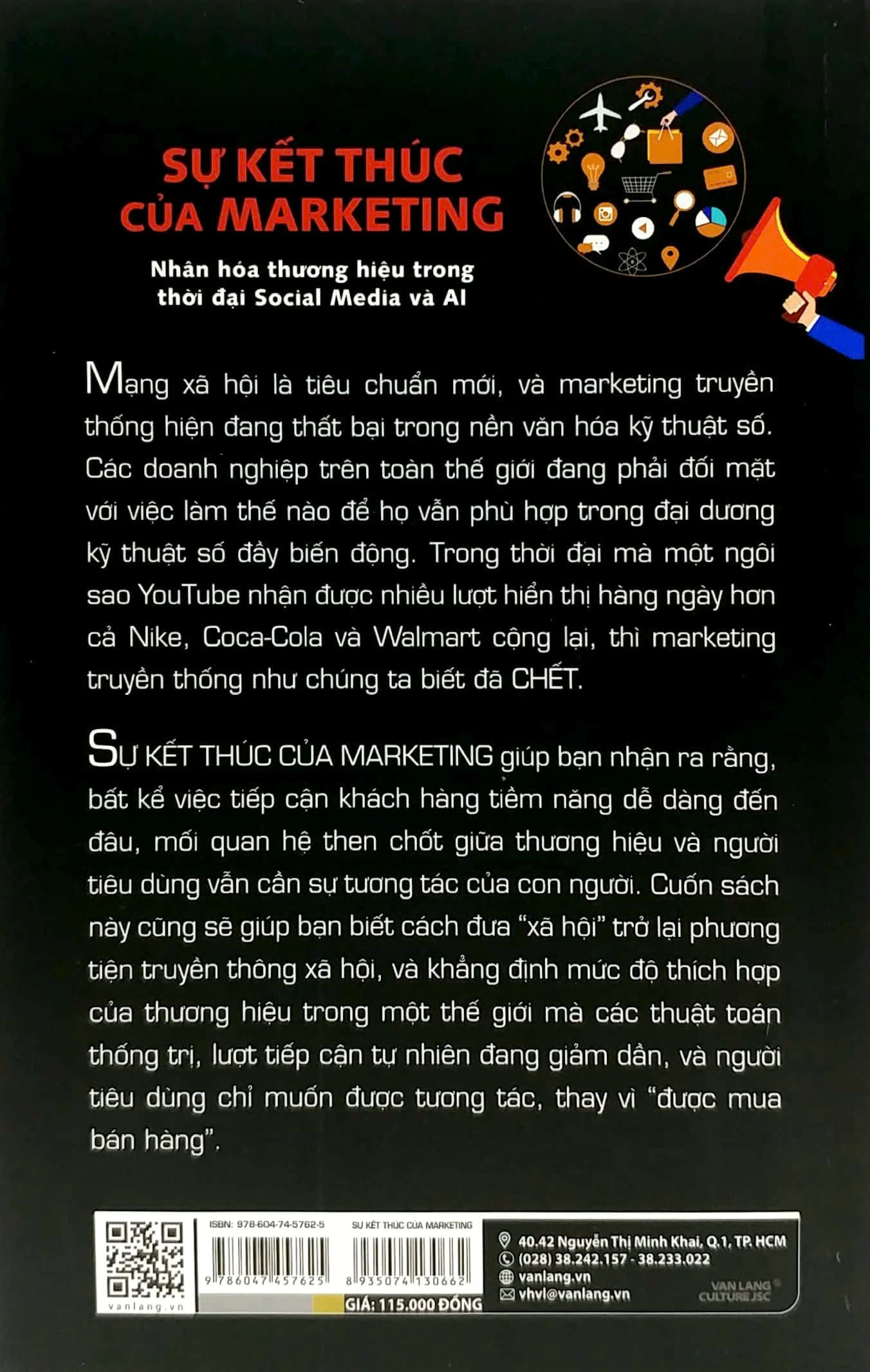 SỰ KẾT THÚC CỦA MARKETING giúp bạn nhận ra rằng, bất kể việc tiếp cận khách hàng tiềm năng dễ dàng đến đâu, mối quan hệ then chốt giữa thương hiệu và người tiêu dùng vẫn cần sự tương tác của con người. Cuốn sách này cũng sẽ giúp bạn biết cách đưa “xã hội” trở lại phương tiện truyền thông xã hội, và khẳng định mức độ thích hợp của thương hiệu trong một thế giới mà các thuật toán thống trị, lượt tiếp cận tự nhiên đang giảm dần, và người tiêu dùng chỉ muốn được tương tác, thay vì “được mua bán hàng”.