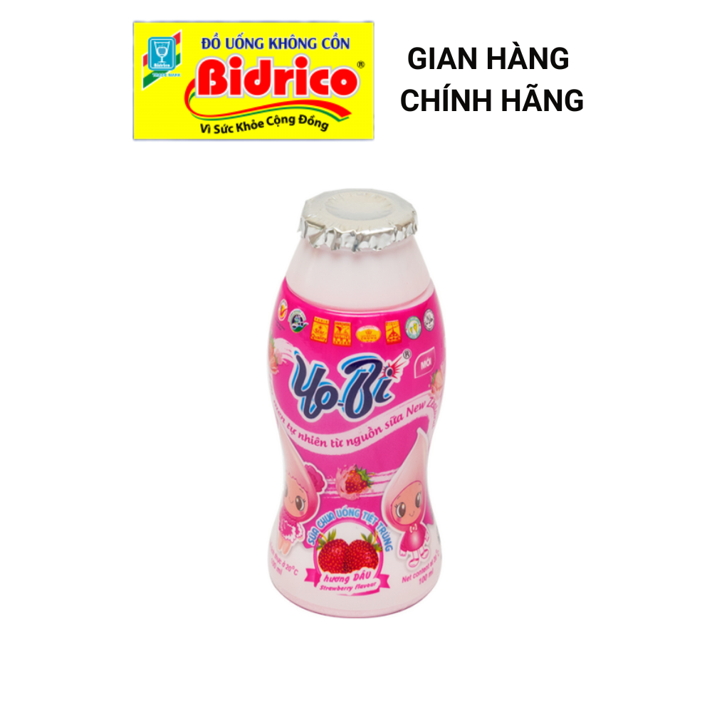 Sữa chua uống tiệt trùng hương dâu Yobi là sản phẩm bổ dưỡng với sự hoà quyện từ vị chua chua ngọt ngọt từ cốt trái dâu và vị thơm béo của sữa bột nguyên chất. Sản xuất trên dây chuyền và công nghệ hiện đại của châu Âu, hoàn toàn khép kín và tự động.