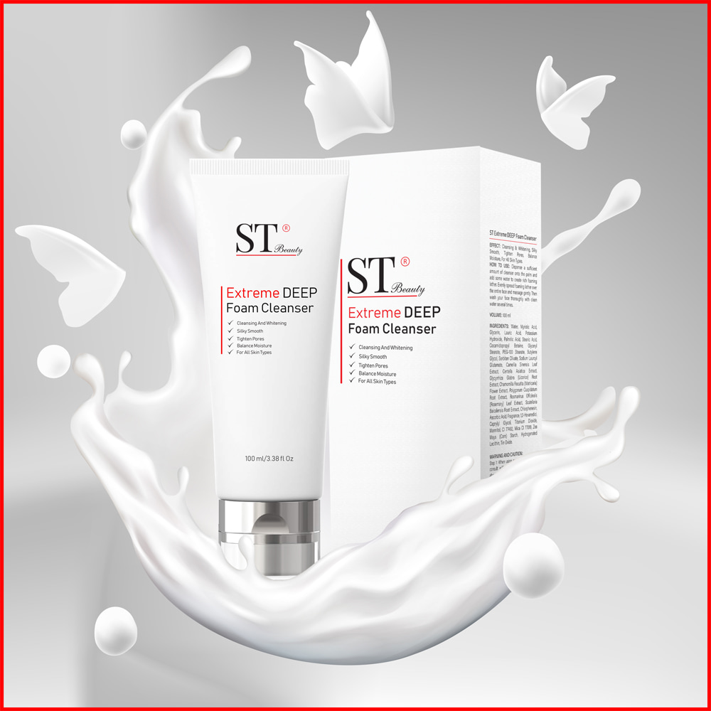 Sữa Rửa Mặt ST Beauty: Làm Sạch Sâu - Thông Thoáng Lỗ Chân Lông – Trắng Đều Màu & Cân Bằng Độ Ẩm cho Da - ST Beauty Extreme DEEP Foam Cleanse – Made in