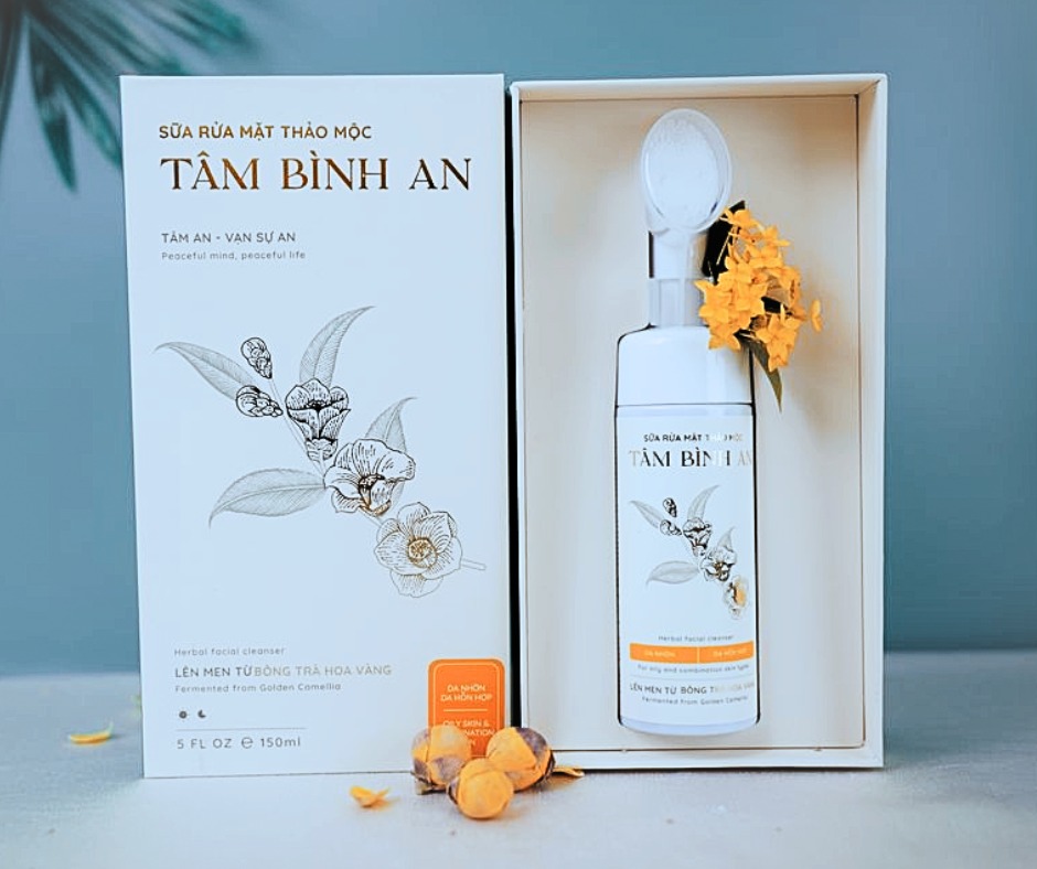 Mô tả: Sữa rửa mặt thảo mộc Tâm Bình An gồm các thành phần chủ yếu từ thiên nhiên, chiết xuất từ Trà Hoa Vàng mang tới các công dụng như làm sạch sâu, làm