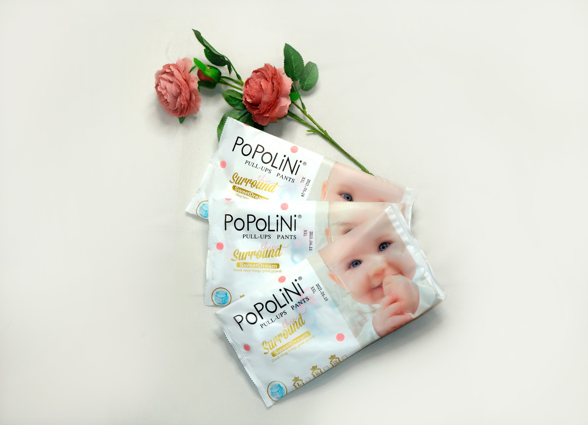 - Tã/ Bỉm POPOLINI với phần lưng thun co giãn 360 độ linh hoạt và mềm mại giúp hoạt động của bé trở nên dễ dàng, năng động.