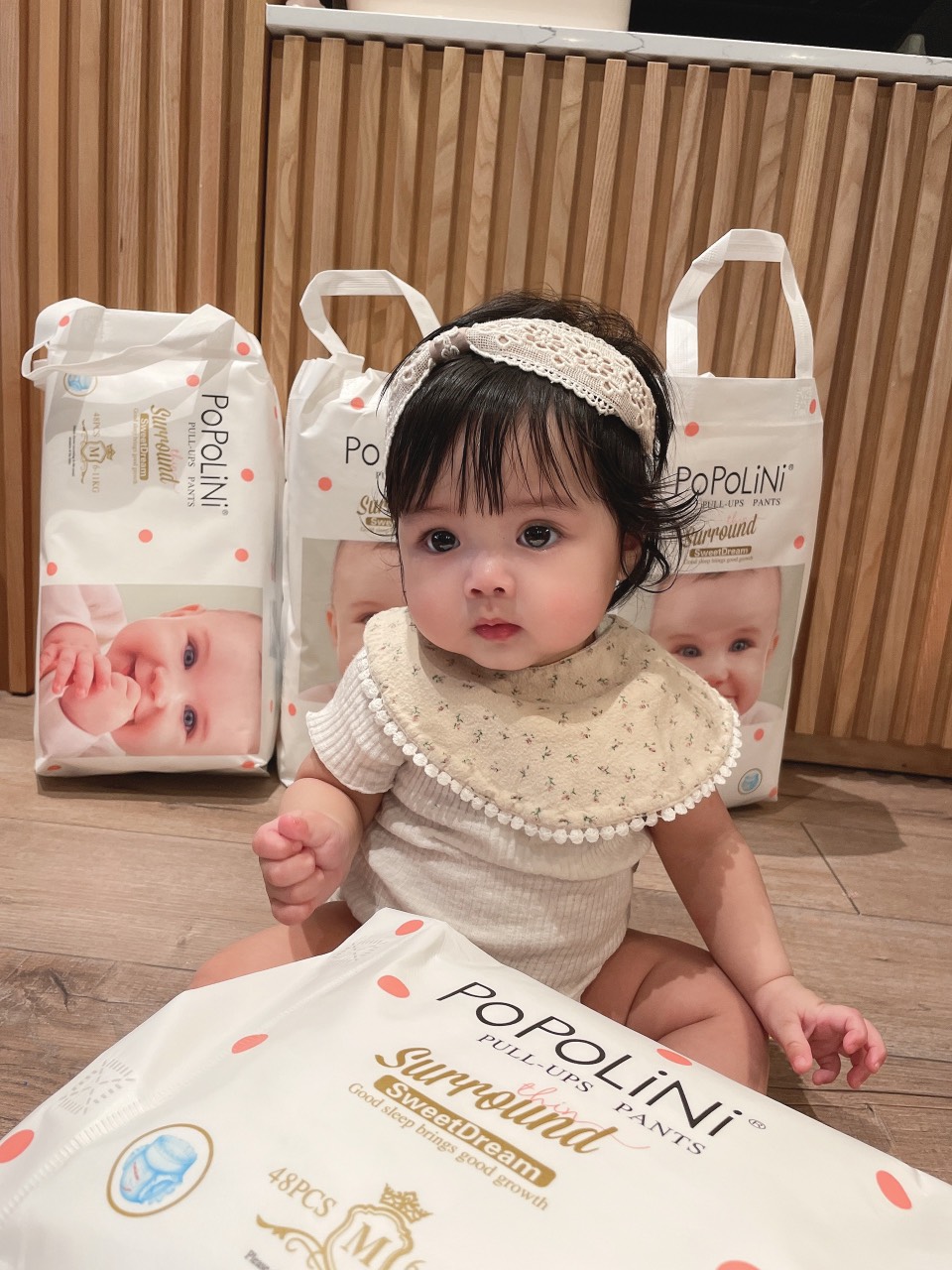 - Tã/ Bỉm POPOLINI với phần lưng thun co giãn 360 độ linh hoạt và mềm mại giúp hoạt động của bé trở nên dễ dàng, năng động.