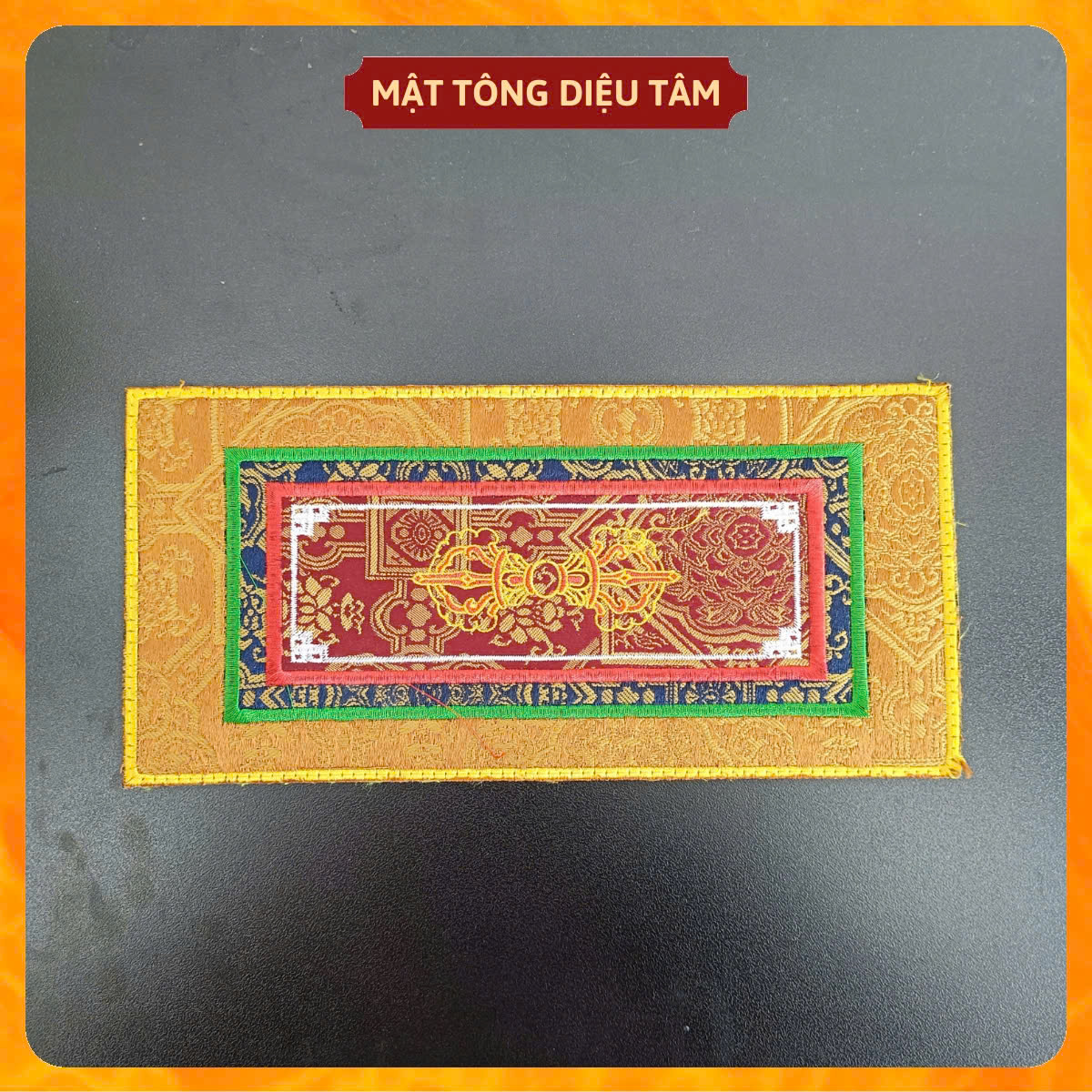 Tấm lót tượng, pháp khí Khăn gấm chuông chày kim cang chữ nhật biểu tượng pháp luân và chùy kim cang Mật Tông Diệu Tâm