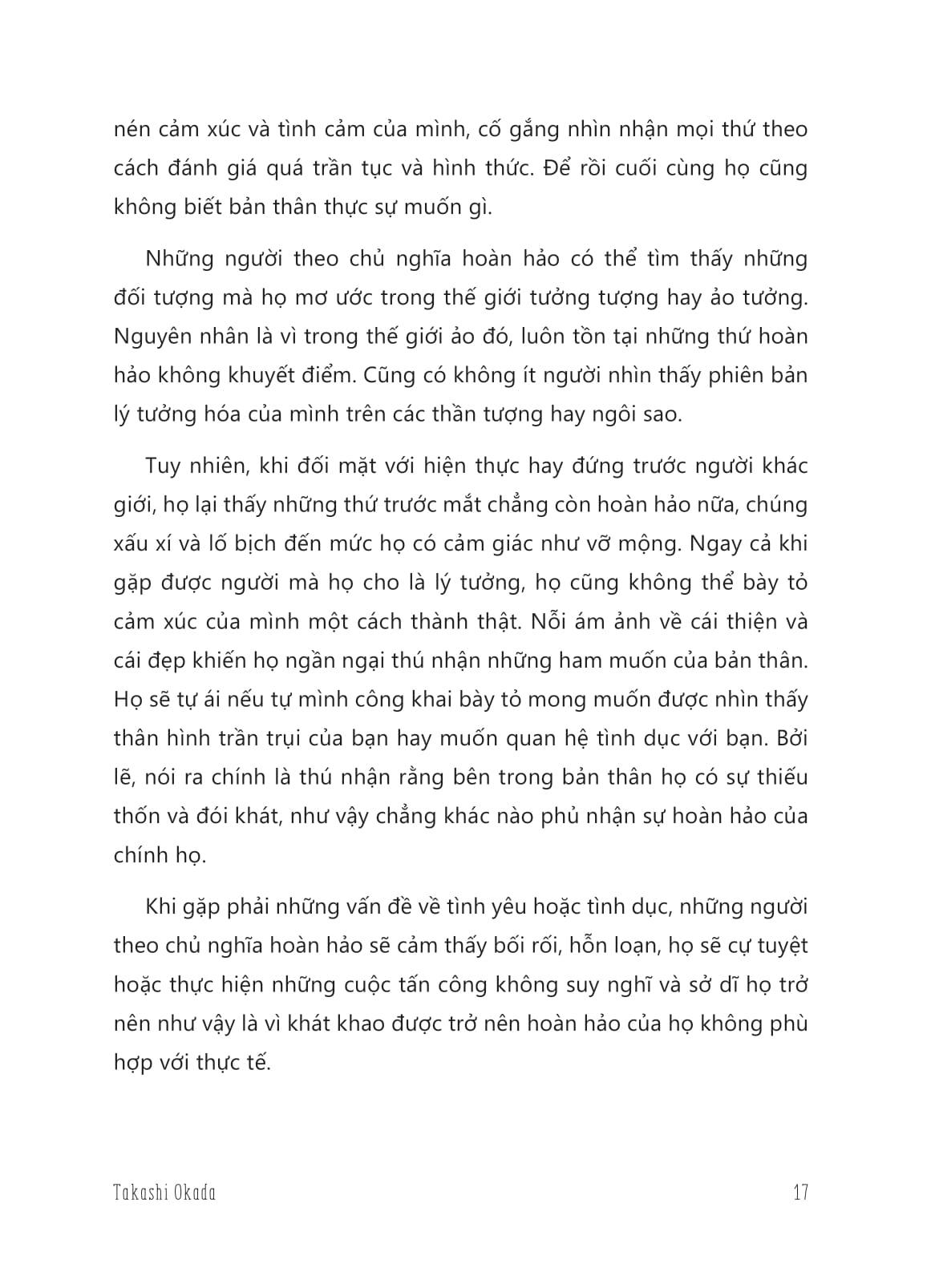 - Nhà văn Nhật Bản Natsume Soseki mắc chứng hoang tưởng bị hại. Vậy khi thiên thần và ác quỷ luôn cùng tồn tại, bạn phải làm sao để đối mặt với con quỷ bên trong con người m.ình? Câu trả lời sẽ được giải đáp trong “Tâm lý học lập dị”. Tựa sách đã chiếm vị trí hàng đầu trong bảng xếp hạng sách tâm lý học phổ thông của Amazon Nhật Bản suốt nhiều năm liền. Từ việc phân tích những thói quen kỳ quặc xuất hiện trong hành vi hằng ngày của con người, nội dung sách sẽ giúp chúng ta khám phá và hiểu về “một bản thân khác” ẩn sâu trong cơ thể, đồng thời tìm lại lối sống cân bằng để không đánh mất nền tảng tinh thần của chính m.ình. Chỉ khi bình tĩnh chấp nhận các trạng thái TÂM LÝ LẬP DỊ và điều chỉnh một cách có ý thức, bạn mới có thể tồn tại mạnh mẽ trong thời đại cạnh tranh khốc liệt này. Sức mạnh của chúng ta nằm ở việc nỗ lực chữa lành bản thân sau thương tổn, không ngại thể hiện nội lực và tình yêu ẩn giấu bên trong m.ình. VỀ TÁC GIẢ: Takashi Okada sinh năm 1960 tại tỉnh Kagawa. Ông là một bác sĩ tâm lý, tiến sĩ y khoa và cũng là một nhà văn. Ông bỏ học khoa triết học của Đại học Tokyo, chuyển qua học và tốt nghiệp ngành Y khoa ở Đại học Kyoto. Ông tham gia nghiên cứu tại khoa Sinh học thần kinh, khoa Khoa học Não bậc cao, khoa Tâm thần, khoa Sinh lý bệnh Não tại cùng một trường đại học. Là một bác sĩ lâm sàng, ông phải đối mặt với cuộc khủng hoảng tâm lý của con người hiện đại. Ông là tác giả của nhiều tựa sách như: “Rối loạn nhân cách ranh giới”, “Hội chứng Asperger”, “Trầm cảm và rối loạn tâm trạng”, “Tại sao con người không thể ngủ?”,…