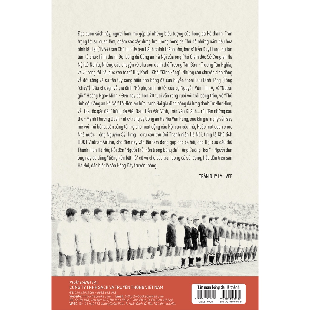 Từ năm 1896, bóng đá lần đầu bén duyên với mảnh đất hình chữ S và dần dần chiếm được cảm tình của người dân Việt Nam. Và ngay trên mảnh đất Hà thành ngàn năm văn hiến, bóng đá cũng chiếm được một vị thế nhất định. Những đội bóng đầu tiên xuất hiện, xuất thân từ tầng lớp bình dân, mang bóng đá đến gần với người hâm mộ, đốt cháy ngọn lửa đam mê trên sân cỏ. Bóng đá Hà thành cũng có cho riêng mình một bề dày lịch sử, một con đường phát triển qua các thời kỳ. Các đội bóng như Thể công, Công an Hà Nội, Tổng cục đường sắt, Quân khu Thủ đô… được nhiều người hâm mộ nhớ đến. Những chân sút, huấn luyện viên, bình luận viên… và cả những cổ động viên tâm huyết của bóng đá Hà thành đã phần nào được ghi lại trong cuốn sách Tản mạn bóng đá Hà thành. Tản mạn về cả một quãng đường có vui, có gian khổ nhưng luôn hết lòng vì đam mê, vì tình yêu dành cho bóng đá.
