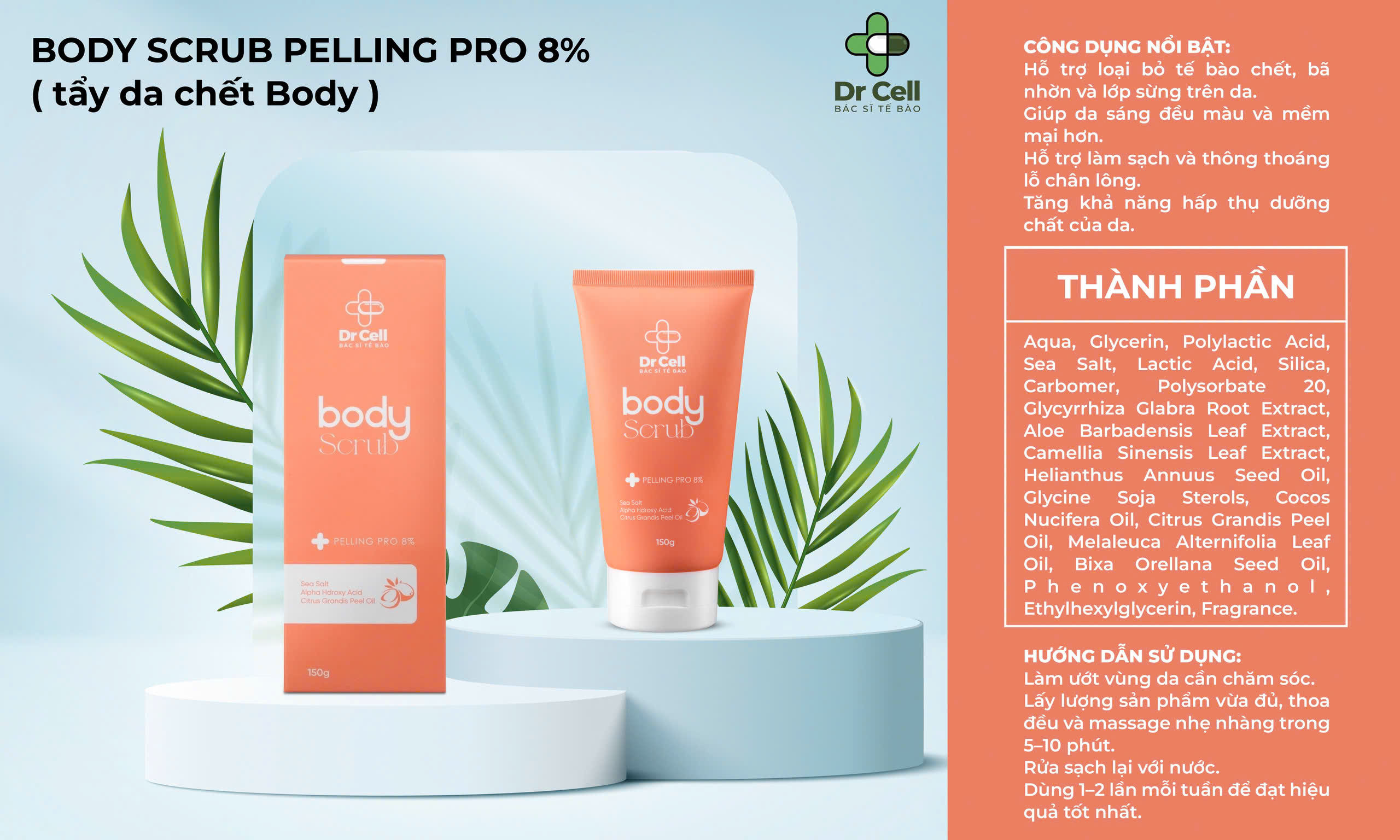 Tẩy tế bào chết, tái tạo và làm mịn da Body Scrub Celaud - Công nghệ Mask & Scurb kết hợp các dưỡng chất làm mềm lớp sừng, tế bào chết trên da. Sau