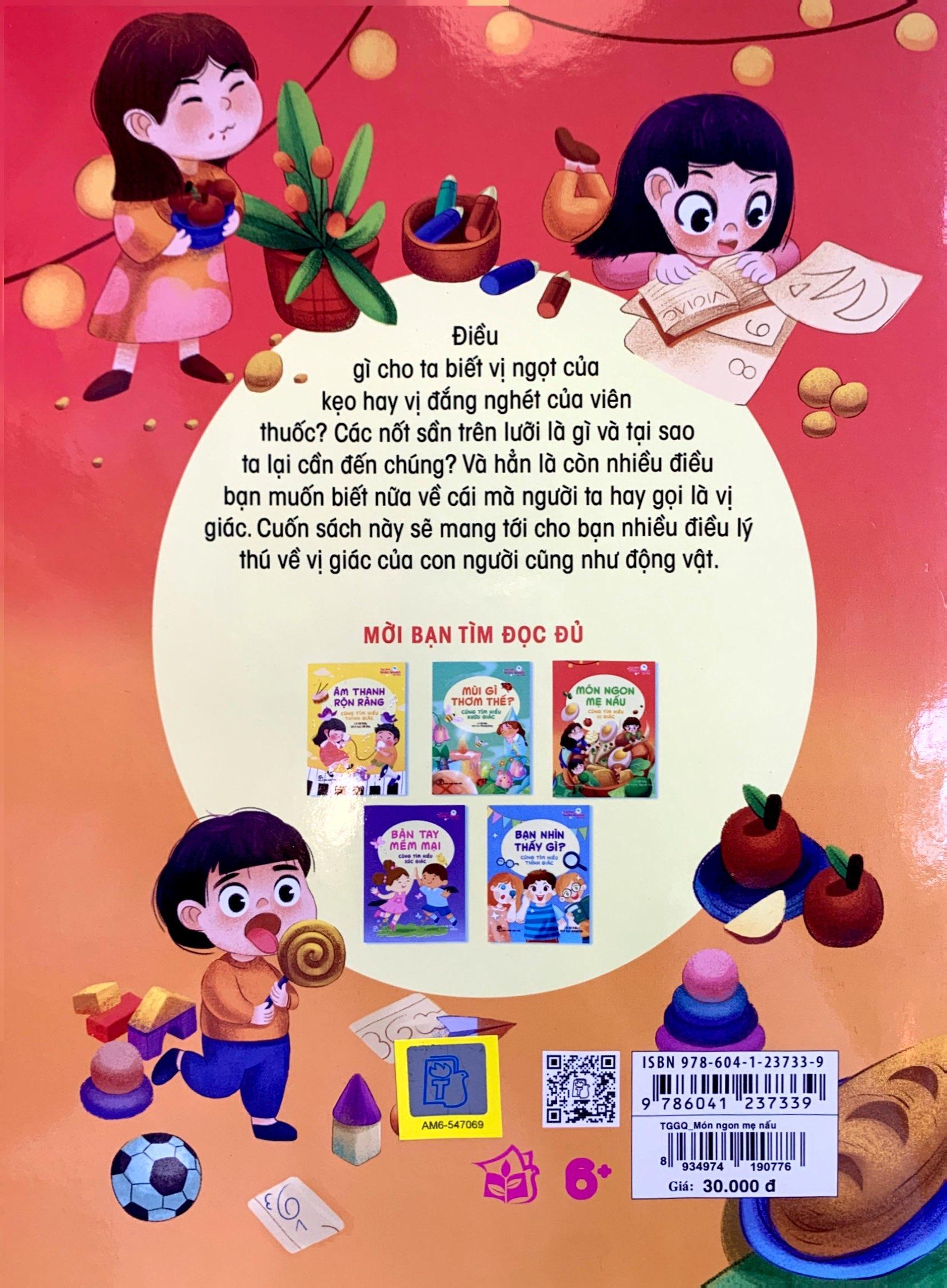“Món ngon mẹ nấu - Cùng tìm hiểu vị giác” là cuốn sách kể cho bạn nghe những câu chuyện lý thú về vị giác. Điều gì cho ta biết vị ngọt của kẹo hay vị đắng nghét của viên thuốc? Các nốt sần trên lưỡi là gì và tại sao ta lại cần đến chúng? Và hẳn là còn nhiều điều bạn muốn biết nữa về cái mà người ta hay gọi là vị giác. Cuốn sách này sẽ mang tới cho bạn nhiều điều lý thú về vị giác của con người cũng như động vật.