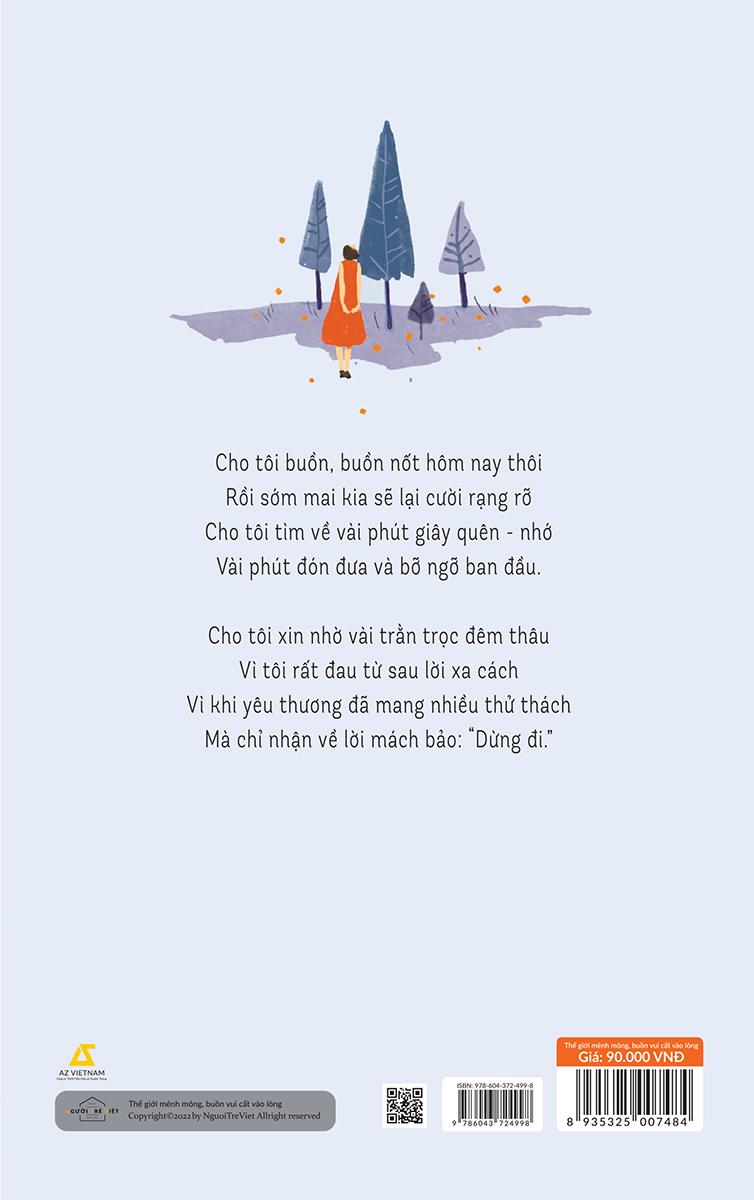 Lưu ý : Sách chỉ tặng quà cho bản in đầu tiên Trong hành trình trưởng thành của mình, chúng ta sẽ gặp gỡ được vô số người: Có người chiến đấu với thời gian, có người sợ thua kém bạn bè. Cũng có người mỗi ngày mở mắt, mỗi tối khép mi đều chỉ tồn tại cơm áo gạo tiền. Có người thấy bản thân hoảng loạn, cảm giác thua kém và tự ti khiến vô số ước mơ vì vậy mà chìm xuống vực thẳm. Hiện thực tàn nhẫn đến mức vùi lấp những ước mơ khi chúng chỉ vừa kịp nảy mầm. Có người một năm đi bệnh viện không biết bao nhiêu lần, tự mình bước vào khu vực cấp cứu. Trọn vẹn quá trình đều không rơi một giọt nước mắt. Nhưng hiển nhiên trong tim đầy gai góc, và nhiều vết sẹo đến đau lòng. Thế giới của người trưởng thành ngoài mặt bình lặng giản dị, nhưng trong lòng mỗi người đều là một trận chiến. “Đừng khóc trước khi đi ngủ” tựa một cái ôm gửi đến bạn - những người đang cảm thấy cuộc sống này không dễ dàng. Vết thương nào rồi cũng sẽ lành, nhưng nếu bạn bỏ cuộc ngay vào thời khắc ấy, người yêu thương cậu sẽ mang những vết thương mới. Sự có mặt của bạn vốn dĩ vẫn luôn có ý nghĩa với rất nhiều người. Mong bạn có thể đóng gói muộn phiền, chuyển giao vào hòm thư cũ, sống một đời rực rỡ. Mắt bạn đẹp như vậy, cười lên xinh biết bao. Bạn cười lên rất đẹp, nhớ cười nhiều một chút, nhất định phải vì chính mình mà vui vẻ sống. “Bất cứ khi nào bạn mệt mỏi, hãy tin rằng thế giới bao la, biển người rộng lớn, sẽ luôn tồn tại nơi chốn để bạn nương náu tâm hồn, yên ổn sống tốt phần đời sau này. Chúc bạn xuân sang, hạ qua dịu dàng, thu đến, đông tàn bình an”. Cảm ơn vì sau hàng ngàn lần bật khóc, bạn vẫn kiên cường bước tiếp.