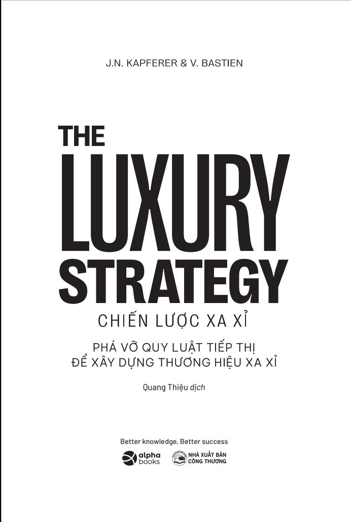Được chắp bút bởi hai chuyên gia hàng đầu thế giới về thương hiệu xa xỉ: Jean-Noël Kapferer và Vincent Bastien, cuốn sách “Chiến Lược Kinh Doanh Của Các Thương Hiệu Xa Xỉ” sẽ giúp người đọc khám phá những bí mật để quản lý thương hiệu xa xỉ thành công đồng thời đưa ra một kế hoạch chi tiết và độc đáo đầu tiên để tiếp thị hiệu quả các thương hiệu cũng như công ty xa xỉ ở cấp độ cao nhất.