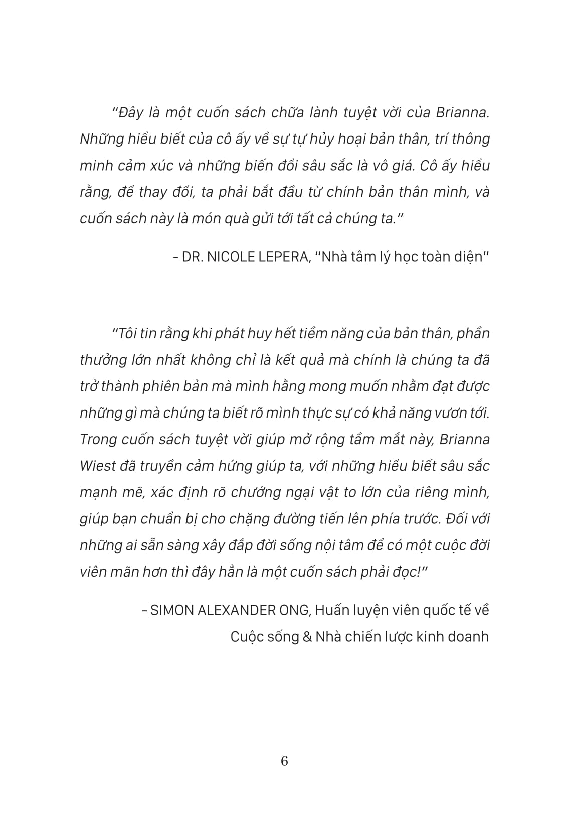 The Mountain Is You: Nếu Không Giải Quyết Vấn Đề, Bạn Sẽ Trở Thành Vấn Đề Giống như một ngọn núi được hình thành, khi hai mảng lục địa va chạm vào nhau, chướng ngại vật khủng khiếp của bạn cũng sẽ nảy sinh từ những nhu cầu cùng tồn tại nhưng trái ngược nhau. Ngọn núi khủng khiếp đó của bạn đòi hỏi bản thân bạn phải dung hoà hai phần bản năng: Phần ý thức và phần vô ý thức – Phần bạn nhận thức được điều bản thân mình mong muốn và phần bạn không nhận thức được lý do vì sao bạn vẫn đang kìm hãm bản thân như vậy! THE MOUNTAIN IS YOU là lời cảnh tỉnh và khơi dậy niềm hy vọng trong nghịch cảnh. Cuốn sách như là lời mời gọi đốt cháy những quy tắc cũ của bản thân để đánh thức người hùng bên trong mỗi người và giúp bạn có thể chủ động chọn cho mình một con đường mới. Cuối cùng, ý nghĩa sâu xa bên trong cuốn sách này chính là tạo ra một cuộc sống mà bạn mong muốn và bạn xứng đáng được hưởng. Cuốn sách gồm có 7 chương Chương 1: Chính bạn là vật cản lớn nhất Chương 2: Sự tự huỷ hoại không giống bất cứ điều gì khác Chương 3: Những tác nhân dẫn lối tới tự do Chương 4: Xây dựng trí tuệ cảm xúc Chương 5: Giải thoát quá khứ Chương 6: Xây dựng tương lai mới Chương 7: Từ tự huỷ hoại tới tự làm chủ Mình cũng biết rằng, tất thảy mọi người không phải ai cũng nhận ra được chướng ngại vật của mình thực sự là gì. Nó có thể là các mối quan hệ, công việc, động lực hoặc tiền bạc. Cũng có thể là cảm giác lo lắng mơ hồ, lòng tự trọng thấp, nỗi sợ hãi hoặc sự bất mãn với mọi việc trong đời. Chướng ngại vật đó thường ít khi là một thử thách trước mắt bởi nó là một vấn đề bên trong mỗi chúng ta, một nền tảng không ổn định, không trông thấy rõ ràng nhưng lại có thể làm xoay chuyển cuộc sống. Chúng ta thường nghĩ rằng đối mặt với một chướng ngại vật to lớn có nghĩa là đối mặt với những khó khăn trong cuộc sống, nhưng sự thật là do chúng ta đã trải qua nhiều năm tích luỹ những tổn thương nhỏ, khả năng thích nghi và cơ chế đối phó, tất cả đều bị tích tụ theo thời gian. Cuốn sách THE MOUNTAIN IS YOU như là một phương thức chữa lành đòi hỏi sự rõ ràng và xác định đâu là con đường phù hợp cho bạn, sau đó sẽ là những bước lập kế hoạch phát triển chứ không chỉ đơn giản là tồn tại. Tác giả Brianna mang tới cho bạn một kỹ năng rèn luyện bằng những công cụ thực tế và những thay đổi nội tâm sâu sắc, nhằm xây dựng lòng can đảm và sự sáng suốt để chúng ta chinh phục ngọn núi của chính mình. Và điều quan trọng nhất, hãy nhớ chúng ta là ai khi hiện diện trên cuộc đời này. Cuốn sách chính là “chiếc la bàn” cho những người đang tìm hướng tiến lên, có đủ dũng cảm để đối mặt với kim chỉ nam của chính mình nhằm tìm lại quyền năng của bản thân. Bạn cần nhớ rằng, trên thế gian này không điều gì có thể kết nối bạn với cuộc sống hơn chính bản thân bạn. Hành động thể hiện tình yêu lớn nhất đối với bản thân chính là không bao giờ chấp nhận một cuộc sống khiến bạn cảm thấy không hạnh phúc. Đi đến cuối cuộc đời, bạn sẽ nhìn thấy những ngọn núi của mình thực sự như thế nào. Đó chính là những món quà! Khi nhìn lại cuộc đời mình, bạn sẽ chẳng nhớ đến những khó khăn nữa. Thay vào đó, bạn sẽ thấy chúng chỉ là những cột mốc, là cơ hội phát triển, là những ngày thức tỉnh ngay trước khi mọi thứ thay đổi mà thôi. Cuối cùng, nếu như bạn đã sẵn sàng xây đắp đời sống nội tâm để có một cuộc đời viên mãn hơn thì đây chính là một cuốn sách mà bạn nên đọc!