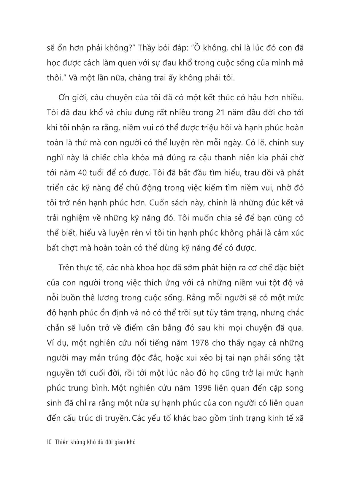 “Thiền không khó dù đời gian khó nhắc nhở chúng ta rằng mỗi người đều mang trong m.ình một hạt giống niềm vui. Cuốn sách sẽ giúp bạn ươm mầm và chăm sóc cho hạt giống bé nhỏ đó để nó lớn lên từng ngày và mang lại hạnh phúc cho chính bạn.” — Goldie Hawn, nữ diễn viên đoạt giải Oscar, nhà sản xuất và tác giả sách bán chạy nhất