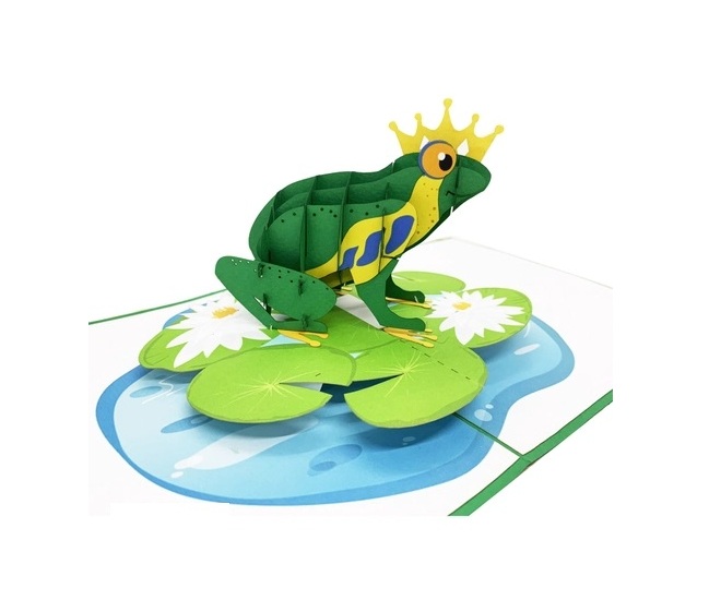 ✨Thiệp 3D Ếch Hoàng Tử Ngồi Trên Lá Sen – Thiệp Pop Up Dễ Thương, Độc Đáo, Tặng Sinh Nhật, Trẻ Em, Bạn Bè, A24