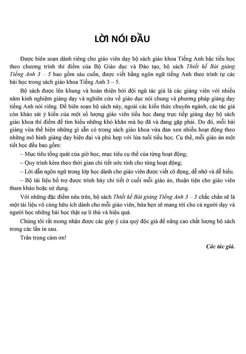 Cuốn sách thích hợp cho giáo viên sử dụng như tài liệu giảng dạy tham khảo hoặc phụ huynh - người muốn tìm tài liệu kèm con học Tiếng Anh tại nhà. Nội dung của