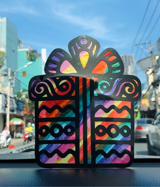 - Bé có thể dán lên cửa kính xe hơi, để mỗi chuyến đi của gia đình trở nên vui nhộn và bắt mắt.