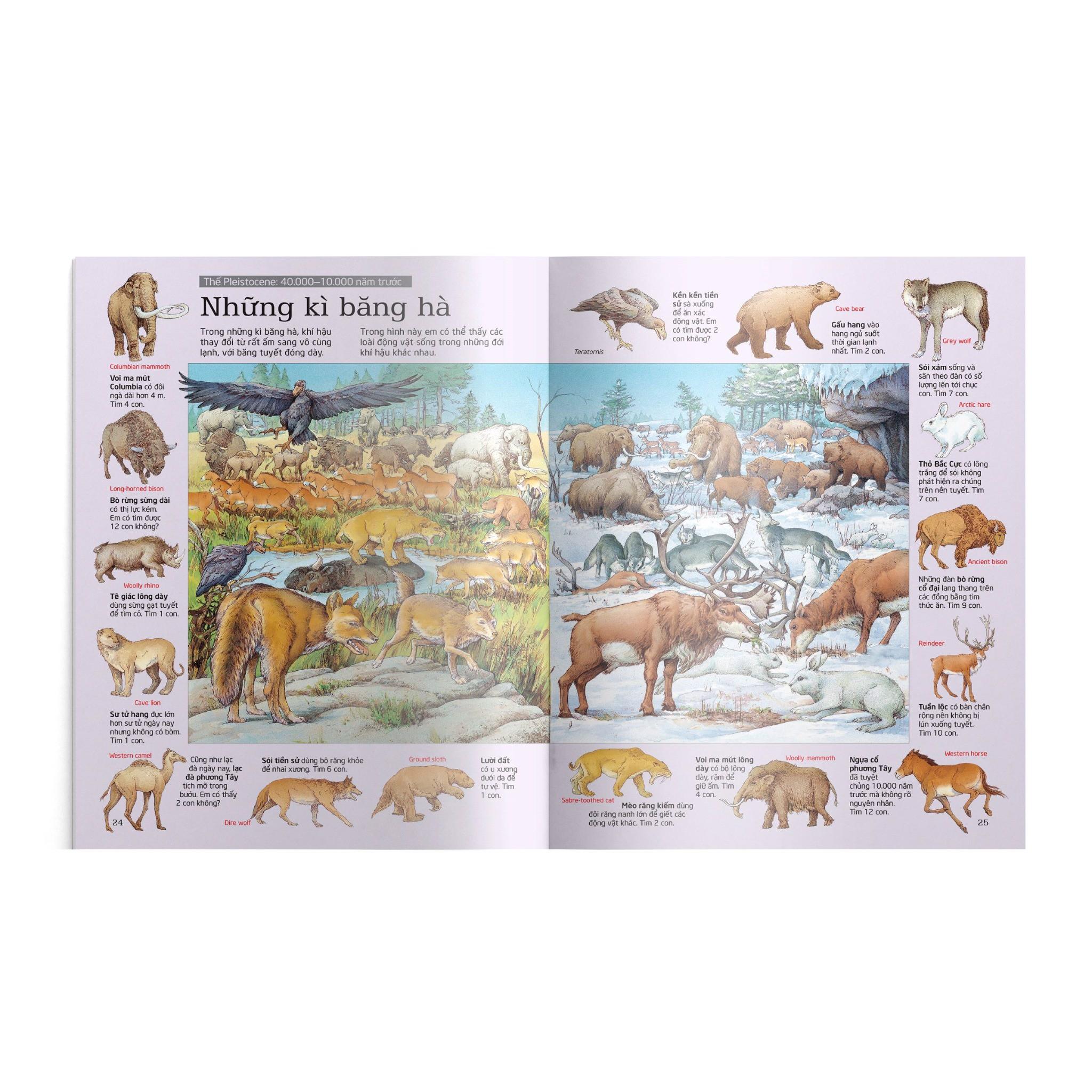 Thử Tài Tìm Kiếm - Khủng Long Từ Uyển long to lớn ăn thực vật đến những đàn Linh đạo long ăn thịt nguy hiểm, trong những trăng cảu cuốn sách tranh tuyệt đẹp này là vô số sinh vật cho em tìm kiếm. Ngoài những thách đố thú vị, Thử tài tìm kiếm – Khủng long còn cung cấp cho em nhiều thông tin hấp dẫn về các sinh vật đáng kinh ngạc từng sống trên Trái Đất nhiều triệu năm về trước.
