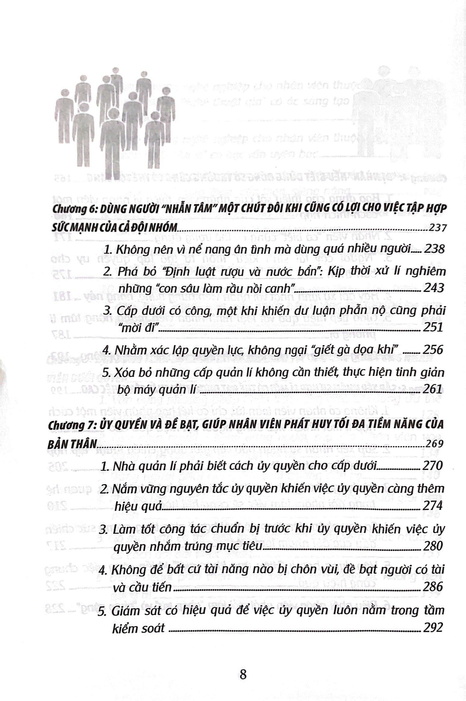 Cuốn sách này cung cấp kiến thức và quy luật chung về thuật dùng người trên các phuwong diện: phát hiện, bổ nhiệm, sử dụng, giữ chân nhân viê Đồng thời, cuốn sách cũng đưa ra các phương pháp thực hiện cụ thể và những điểm cần lưu ý có liên quan nhằm giúp các nhà quản lí có thể giải quyết triệt để các "bài toán khó", cũng như tránh được những sai lầm trong việc dùng người, trở thành nhà quản lí giỏi dùng người
