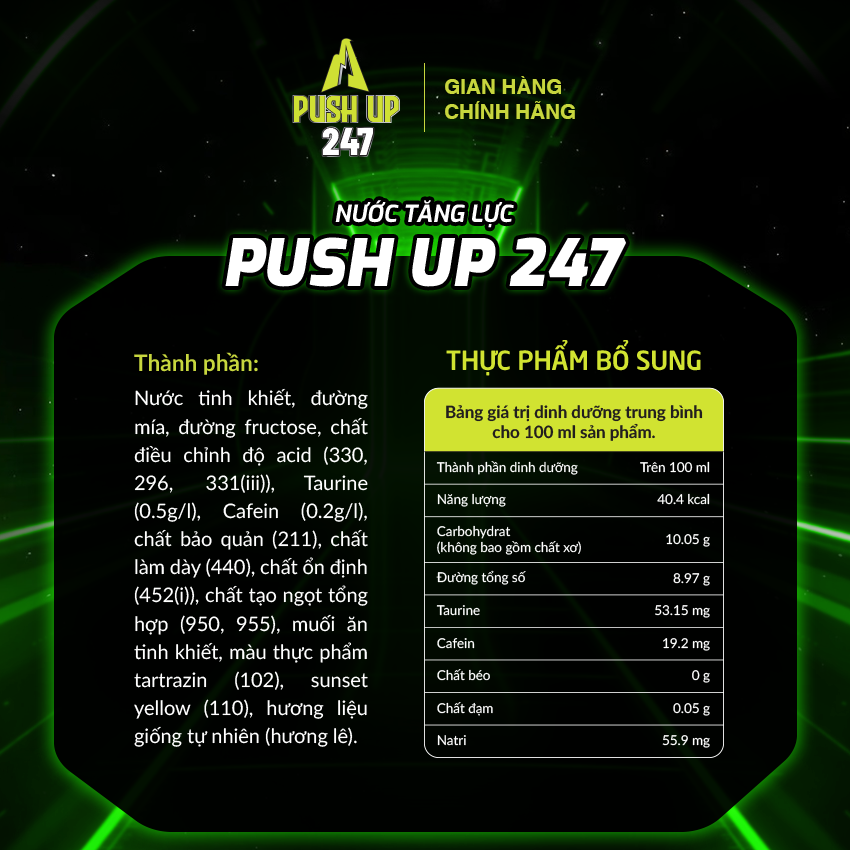 PUSH UP 247 chính thức ra mắt – Bùng nổ năng lượng, khai mở bản lĩnh Push Up 247 vừa xuất hiện với hướng đi khác biệt: kết hợp vị trái cây thanh mát với công thức năng lượng cân bằng, ít đường, không gây tích mỡ. Hương vị lê dịu nhẹ được phát triển dựa trên hàm lượng caffeine và taurine – mức vừa đủ để duy trì sự tập trung, không gây "quá kích" hay cảm giác bồn chồn. Push Up 247 vị Lê do Tập đoàn Hương Sen sản xuất Dòng sản phẩm này là đồng hành cùng người dùng trong các "thời điểm hiệu suất" – khi cần bật lại tinh thần để hoàn thành công việc, luyện tập hay học tập dài giờ: "Push Up vị Lê – Đam mê dẫn lối, cho 24/7 êm mượt" là thông điệp mà sản phẩm Push Up 247 muốn đồng hành cùng người tiêu dùng.