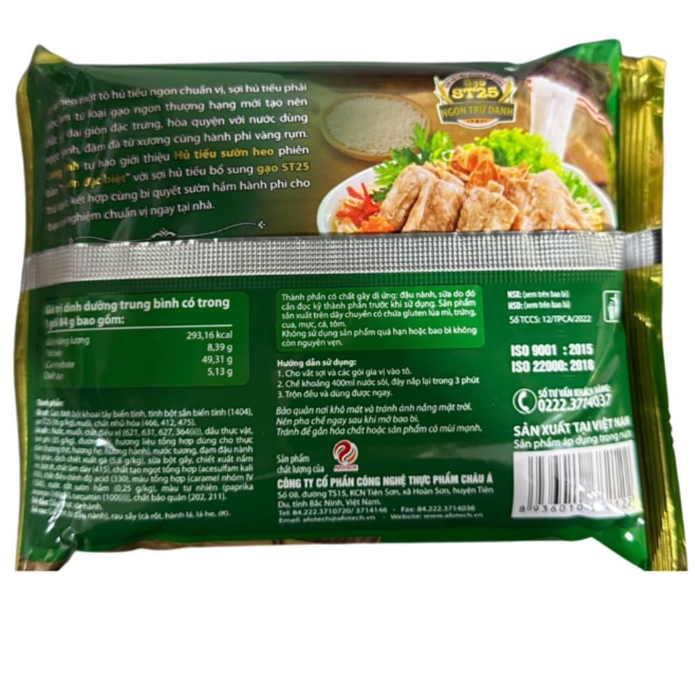 - Thành phần: VẮT HỦ TIẾU - Gạo, tinh bột, chất làm dầy (tinh bột xử lý oxy hoá (1404)), muối, chất nhũ hoá (natri cacboxymethyl cellulose (466), lecithin đậu nành (322(i))).