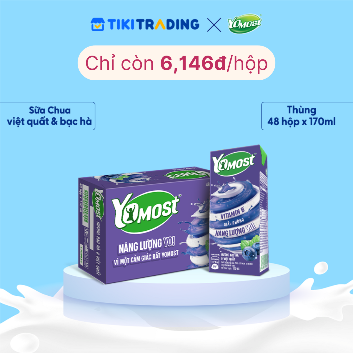 - Thùng 48 Hộp Sữa Chua Lên Men Tự Nhiên Yomost Bạc Hà - Việt Quất được làm từ sữa chua lên men tự nhiên kết hợp cùng hương vị cam tươi tự nhiên thơm ngon,