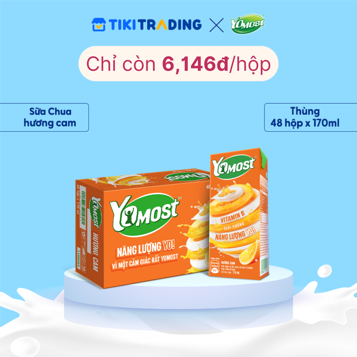 - Thùng 48 Hộp Sữa Chua Lên Men Tự Nhiên Yomost Vị Cam được làm từ sữa chua lên men tự nhiên kết hợp cùng hương vị cam tươi tự nhiên thơm ngon, giúp cung cấp nhiều loại dưỡng chất cần thiết cho cơ thể như protein, canxi và vitamin cho cơ thể.