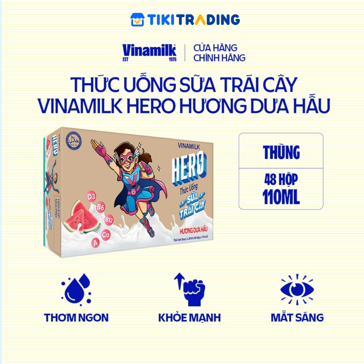 ✨Thùng 48 hộp thức uống sữa trái cây vị dưa hấu Vinamilk Hero 110ml