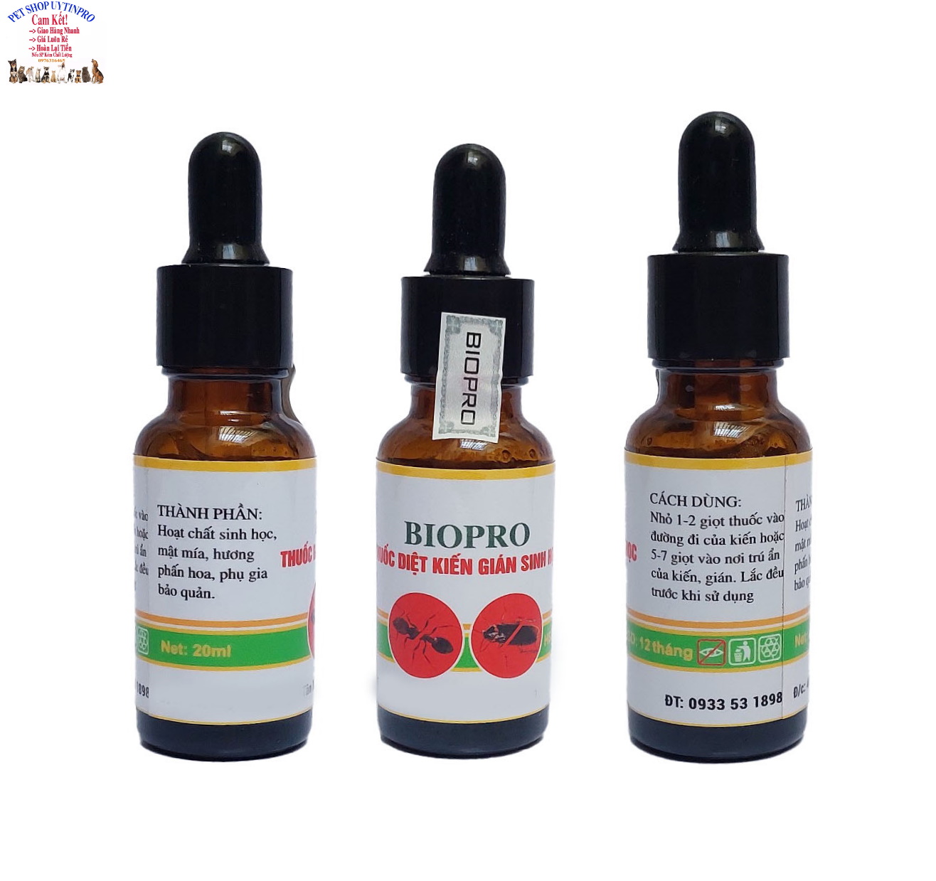 Thuốc diệt kiến gián sinh học BioPro Chai 20ml Dạng nhỏ Giúp diệt sạch kiến gián tận gốc, kiến đen, kiến lửa, gián đức => Shop cam kết sản phẩm như hình! Cơ chế hoạt động: Diệt kiến: dựa vào tập tính chia sẻ thức ăn của kiến, kiến thợ mang thuốc diệt kiến gián Anbio về tổ và chia sẻ cho cả đàn, kể cả kiến chúa. Diệt được kiến chúa thì tổ kiến sẽ biến mất Diệt gián: dựa vào tập tính ăn xác đồng loại của gián. Gián ăn thuốc và chết đi, những con khác ăn xác đồng loại sẽ tiếp tục nhiễm thuốc tạo hiệu ứng domino chết cả đàn. Nên nếu có xác gián các bạn nên quét vào 1 góc đừng hốt bỏ vội, chờ gián hết hẳn rồi hẵng dọn nhé. Hướng dẫn sử dụng
