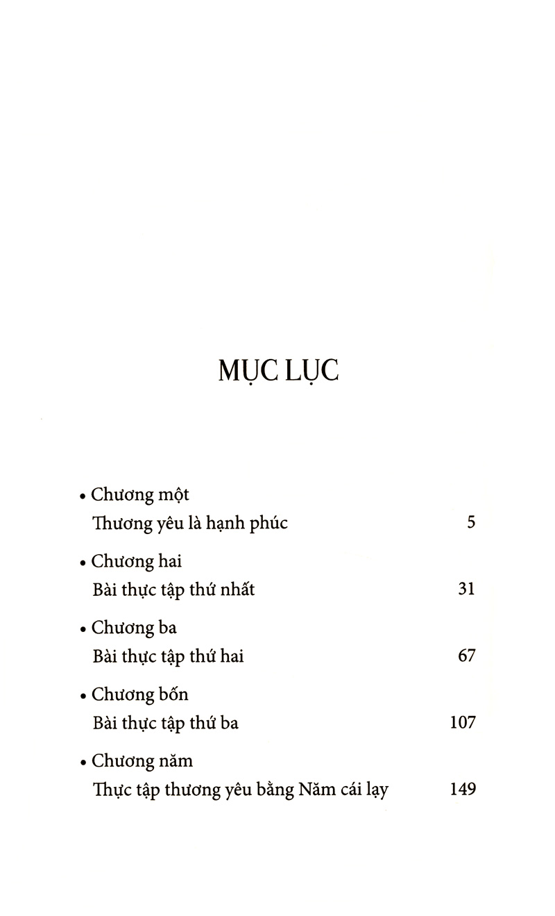 Thương yêu ở trong đạo Phật là một sự thực tập chứ không phải là sự hưởng thụ mà thôi. Tu tập như vậy thì càng ngày mình càng hạnh phúc và người yêu của mình càng ngày càng hạnh phúc.Sách được chia thành năm phần. Phần đầu tiên chỉ ra cho chúng ta thấy yêu thương là cội nguồn của hạnh phúc. Các chương sau là cái bài thực tập, từ trong tâm, gieo trồng và nuôi dưỡng thương yêu để mang lại hạnh phúc cho chính mình và người khác.