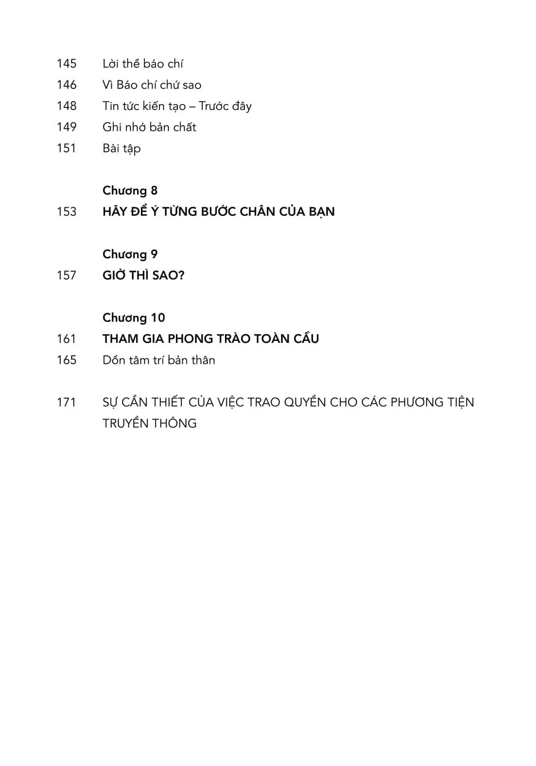 - Đề xuất giải pháp xây dựng một nền báo chí đa chiều, có khả năng truyền cảm hứng tích cực và mang lại nhiều lợi ích toàn cầu hơn. Tác giả đề xuất giải pháp cải thiện tình hình theo hướng tích cực bằng cách thiết lập lại một nền truyền thông trung thực, đa chiều, được xây dựng trên căn bản là "tin tức xây dựng" (constructive news). Cơ chế hoạt động của truyền thông - tin tức toàn cầu đương thời - với nền dân chủ truyền thông phương Tây như một kiểu bài học được mô tả, phân tích bằng những quan sát nghề nghiệp thấu đáo và hàng loạt những dẫn chứng thực tế sinh động. Cuốn sách có ích cho một CÁCH LÀM TRUYỀN THÔNG MỚI, khi truyền thông dễ dàng tràn ngập "tin xấu" (negative) và sự lên ngôi của chủ nghĩa dân tuý (populism) dần dà tạo nên mối hoài nghi ngày càng lớn trong dư luận. Tác giả Ulrik Haagerup nguyên là Giám đốc điều hành của Đài phát thanh – truyền hình Quốc gia Đan Mạch; Fouder và CEO của Viện nghiên cứu Tin tức xây dựng (Constructive Institute) mục tiêu cải thiện văn hóa tin tức toàn cầu.