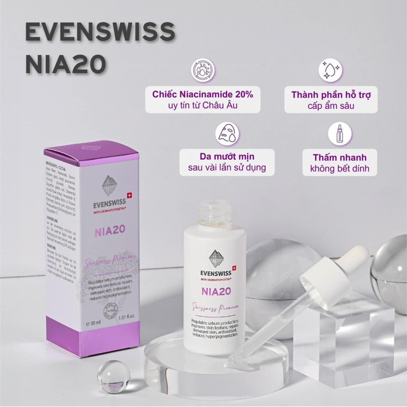 ✨TINH CHẤT CHỐNG LÃO HÓA, ĐIỀU TIẾT BÃ NHỜN EVENSWISS NIA20 30ML