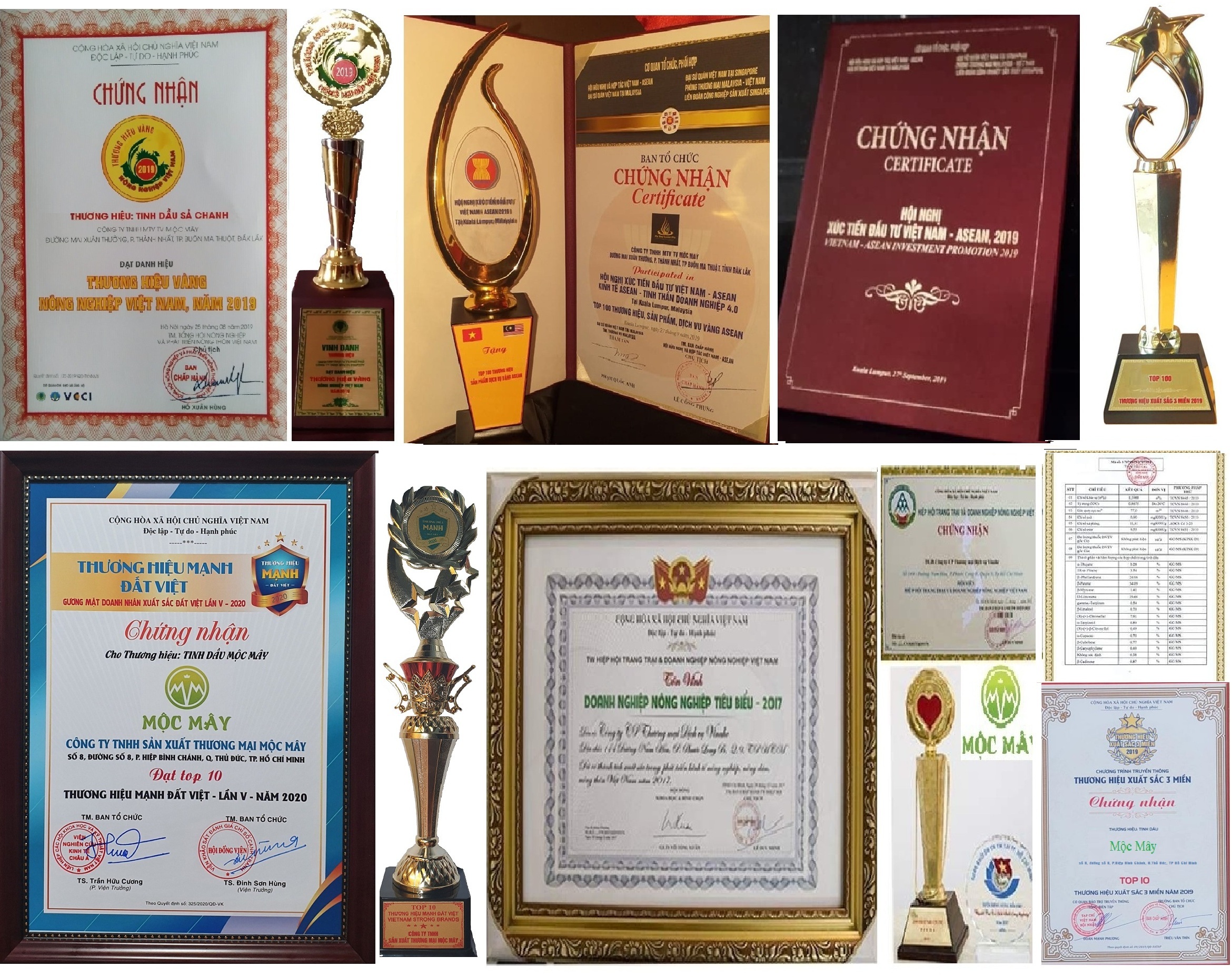 ĐÔI NÉT VỀ MỘC MÂY FARM Mộc Mây Farm là xưởng sản xuất tinh dầu có thể nói là lớn nhất Việt Nam hiện nay. Gồm 06 nhà máy tại Bình Dương, ĐắkLắk, Đồng Nai, Tiền Giang, Tây Ninh. Cùng với đội ngũ kĩ sư giàu kinh nghiệm. Nay chúng tôi cho ra đời nhiều sản phẩm tinh dầu nguyên chất 100% đã được kiểm nghiệm từ mẫu đất trồng, nguồn nước tưới theo tiêu chuẩn Organic, bón phân hữu cơ, ko sử dụng hóa chất, kích thích tăng trưởng. Lò chưng cất hiện đại dùng điện 3pha, được chế tạo bằng inox cao cấp dùng trong y dược để tránh ra ten làm tinh dầu bị nhiễm kim loại nặng, mất đi tinh chất, mùi hương vốn có của tinh dầu trong quá trình chưng cất, tất cả đều đạt tiêu chuẩn xuất khẩu của trung tâm giám định Vinacontrol, Quatest3, Bộ y tế… và được tôn vinh trong lễ trao giải doanh nghiệp nông nghiệp tiêu biểu 2017,  top 10 thương hiệu vàng nông nghiệp VN 2019, TOP 10 thương hiệu mạnh đất Việt 2020 và một số giải thưởng khác... Hiện tại chúng tôi đang bán sỉ cho hầu hết các đại lý lớn nhỏ và nhiều Cty dược, mỹ phẩm trong và ngoài nước Nếu các bạn đã từng sử dụng các loại tinh dầu ở nhiều nơi. Nay hãy cảm nhận sự khác biệt đến từ Mộc Mây Farm với triết lý đem tinh dầu Việt vươn xa thế giới. Mộc Mây Farm: “ nông trại của những mùi hương”